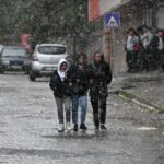 Doğu Anadolu Bölgesi'nde hava sıcaklıklarının düşmesi sonrası Erzurum'da etkili olan sağanak ve soğuk hava, sabah saatlerinde yüksek kesimlerde yerini kar yağışına bıraktı.
