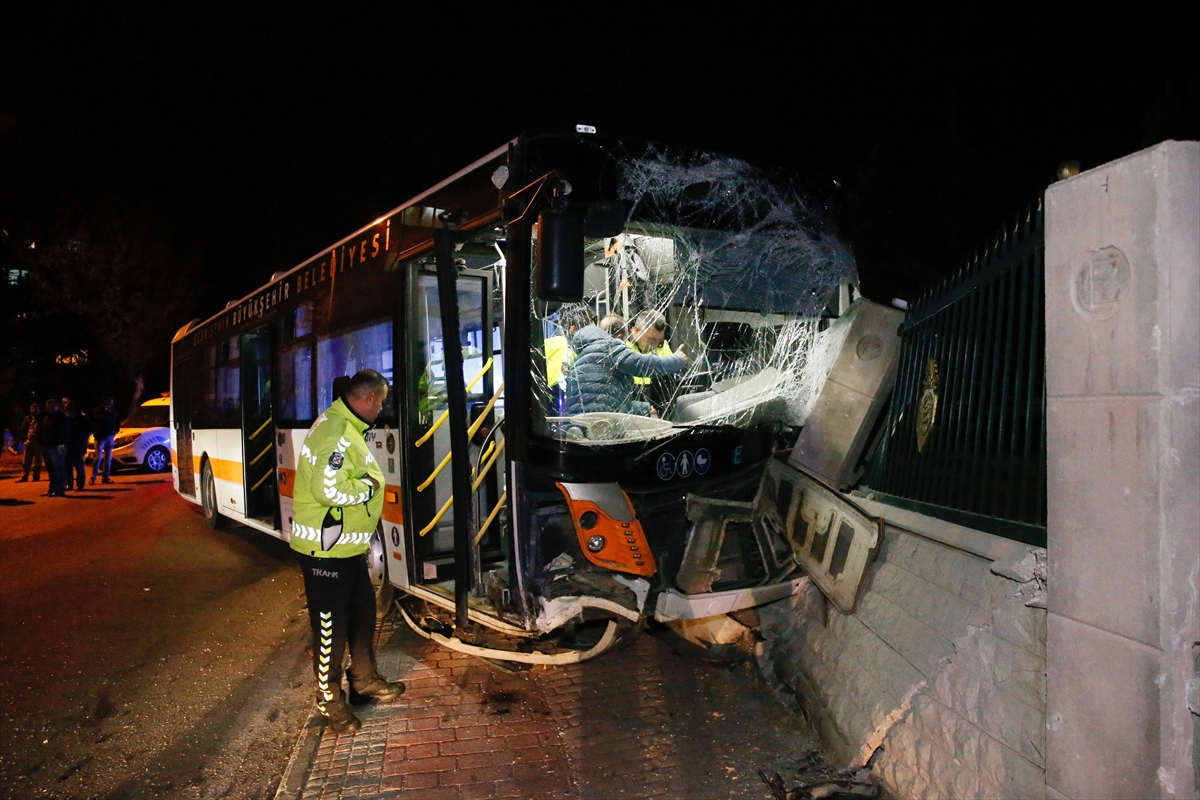Savrulan otobüs, Piri Reis Parkı'nın istinat duvarına çarptı.