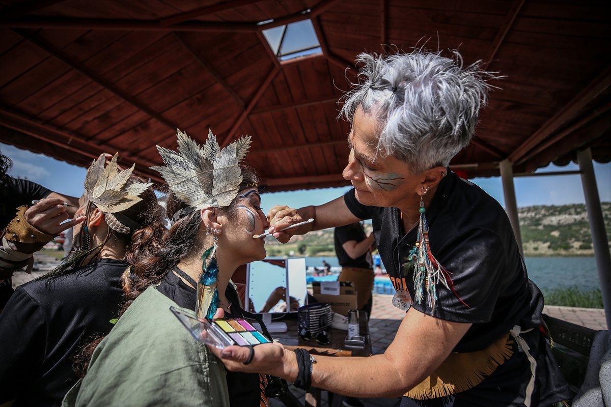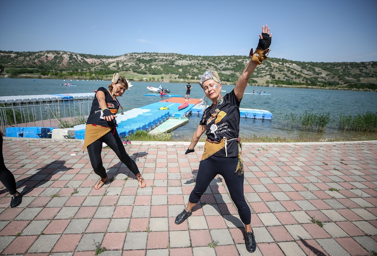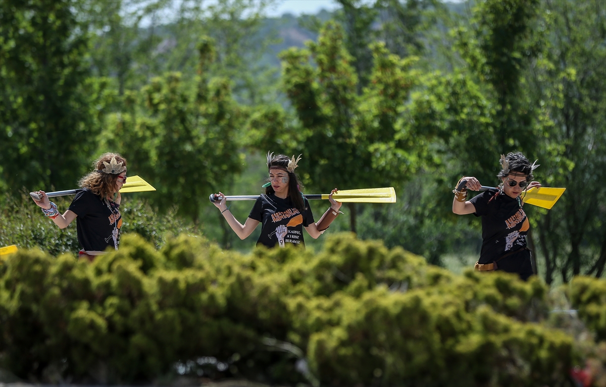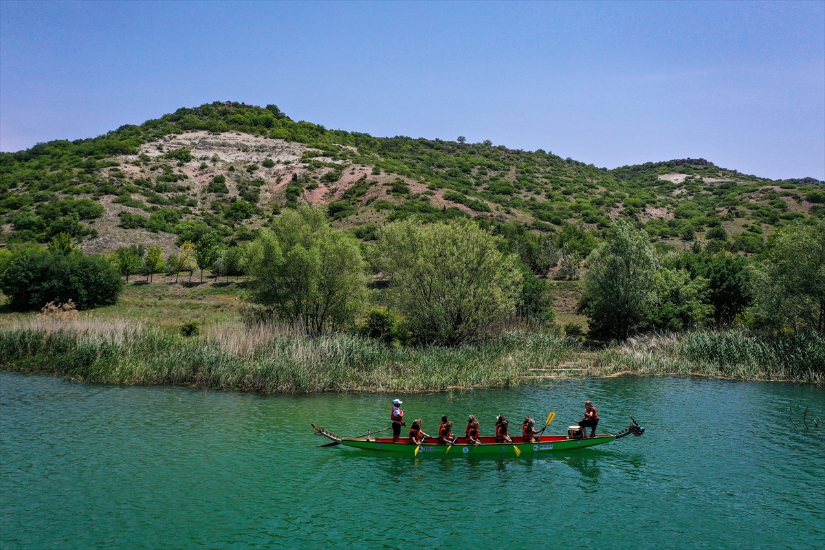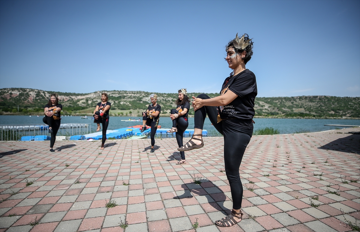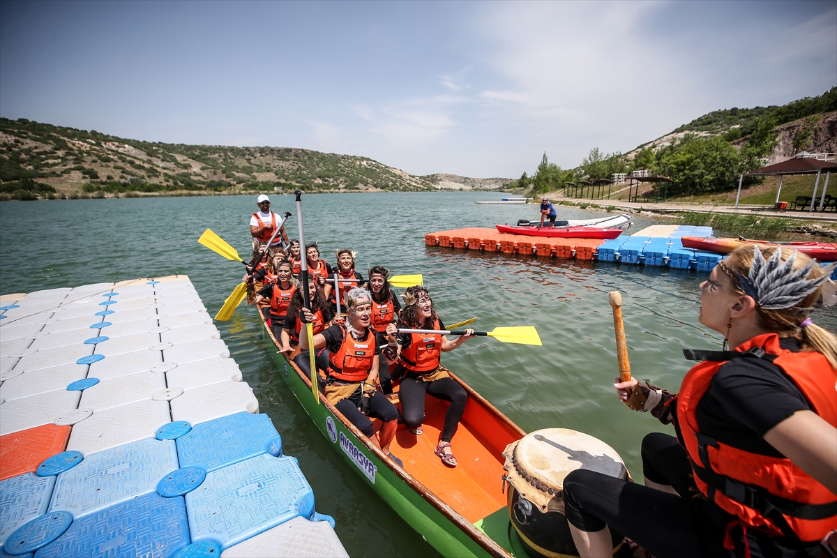 "Amazonlar", İstanbul'da 11-12 Haziran'da gerçekleştirilecek Kurumlararası Dragon Festivali'ne Eskişehir'deki Sarısungur Göleti'nde antrenman yaparak hazırlanıyor.