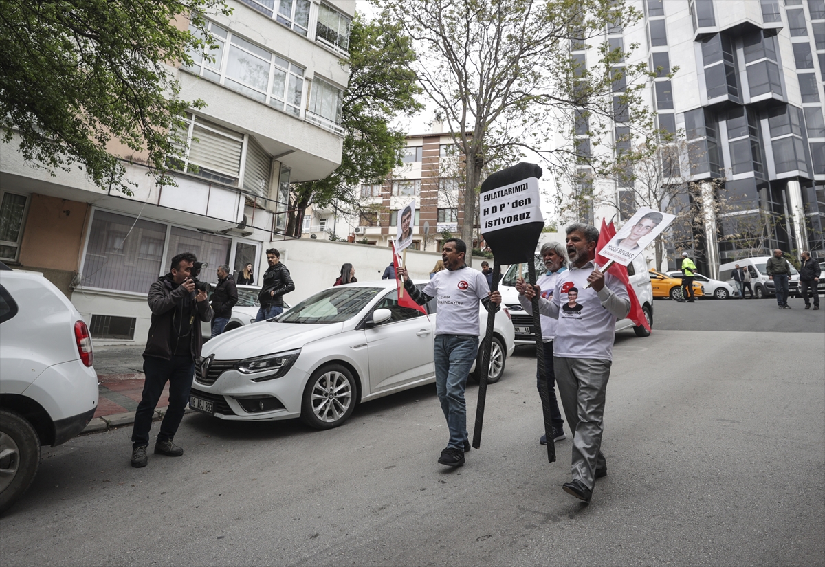 ANKARA (AA) – Dağa kaçırılan çocukları için Diyarbakır'da evlat nöbeti sürdüren aileleri temsilen üç baba, Ankara'da HDP Genel Merkezi binası önüne siyah çelenk bıraktı.
