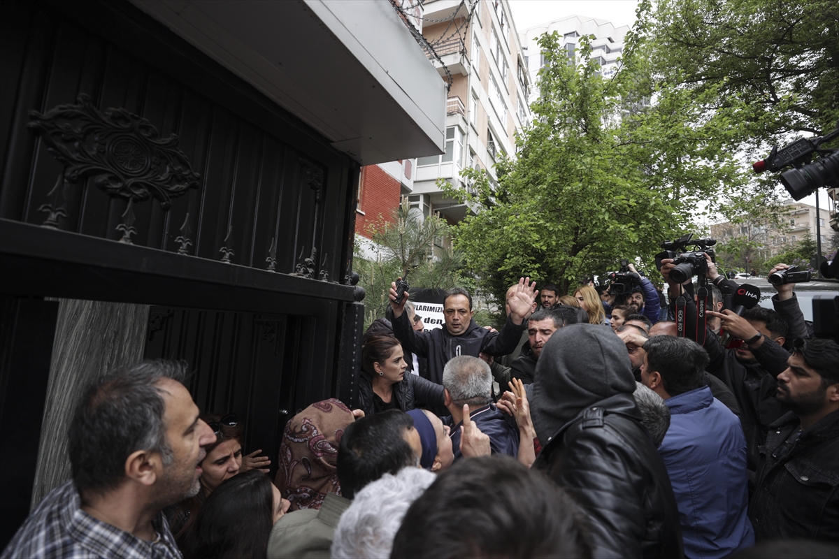 Açıklamaların ardından HDP binasındaki görevlilerin çelengi kaldırmak istemesi üzerine, babalar ile aralarında arbede yaşandı.