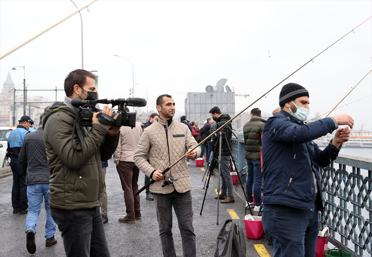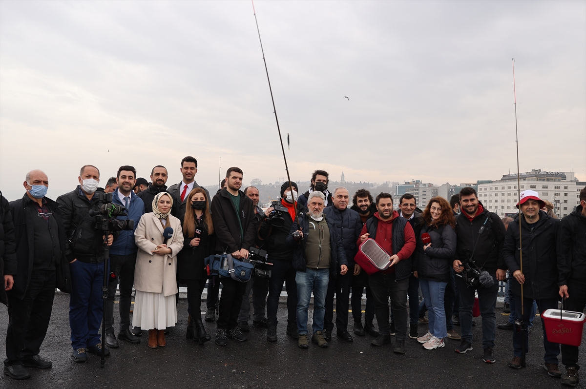 İSTANBUL (AA) – İstanbul'da basın mensupları, Fatih Belediyesince 10 Ocak Çalışan Gazeteciler Günü dolayısıyla düzenlenen "Oltada Buluşalım" etkinliği kapsamında Galata Köprüsü'nde balık tuttu.