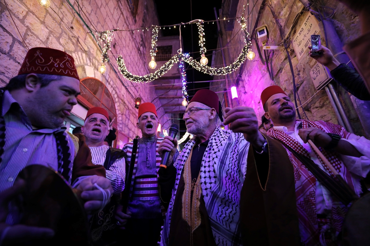 Mescid-i Aksa'nın Hutta kapısı ve diğer kapılarında geleneksel kıyafetleriyle teravih namazı vaktinde toplanan her yaştan Filistinli, ışıklar ve duvar resimleriyle süslenmiş yollardan Eski Şehir'in surları içinde yer alan Laklak Kulesi bölgesine yürüdü. Yol boyunca tef, darbuka gibi müzik aletleriyle Filistin şarkıları söylendi.