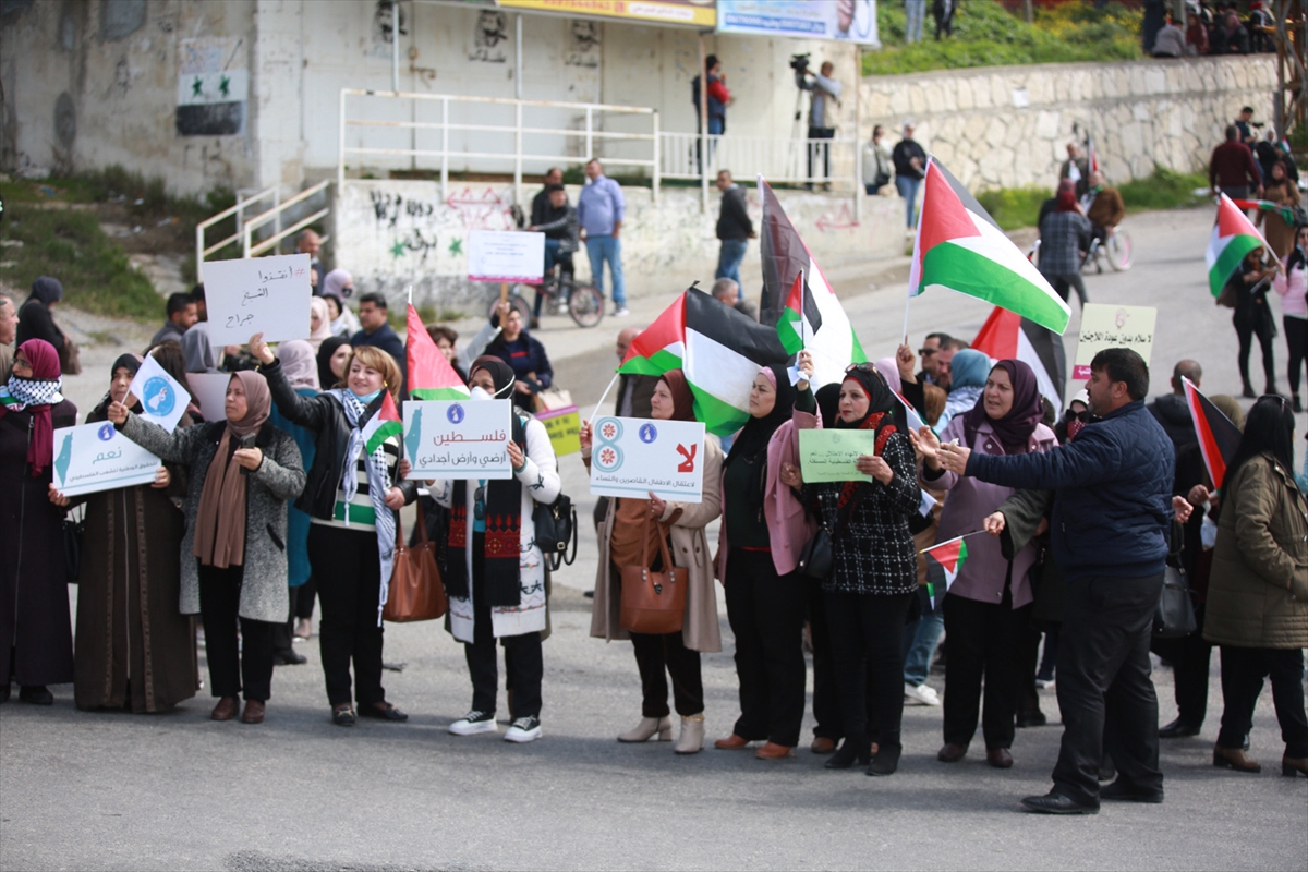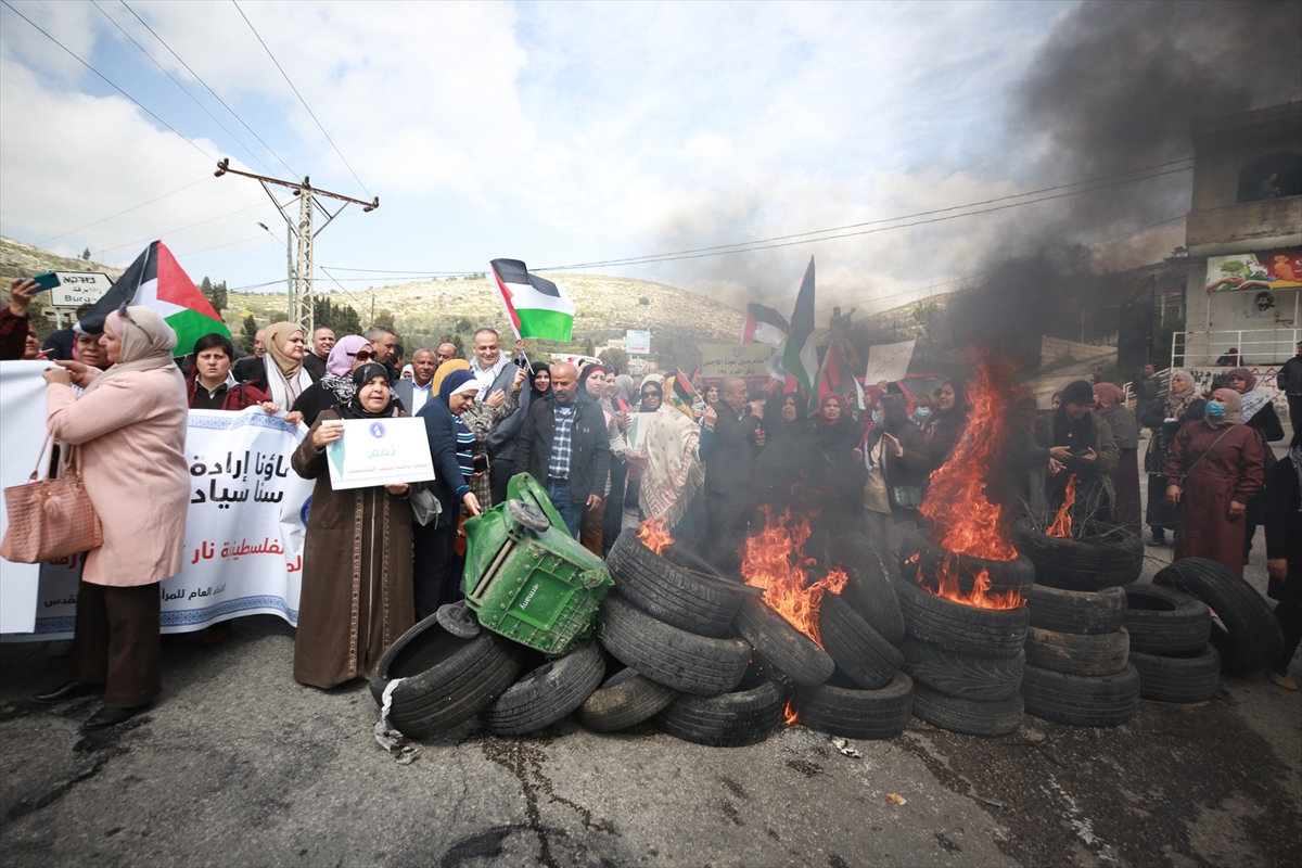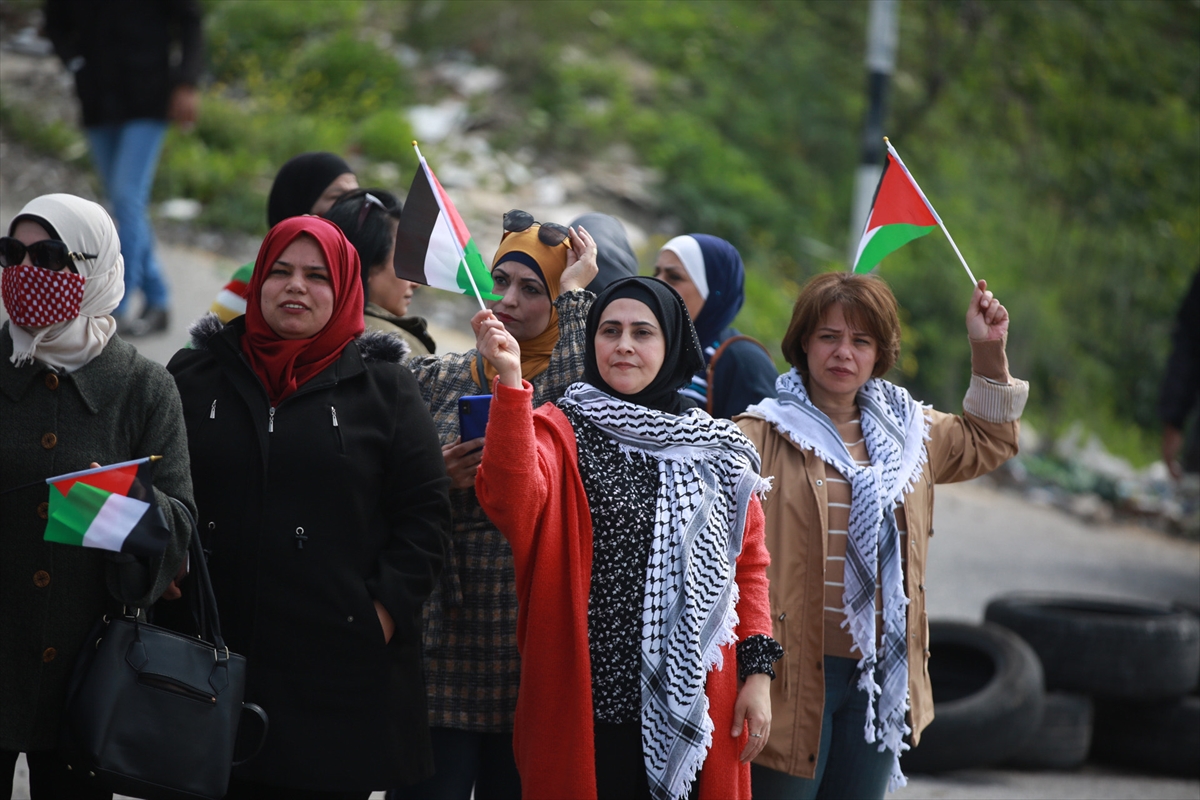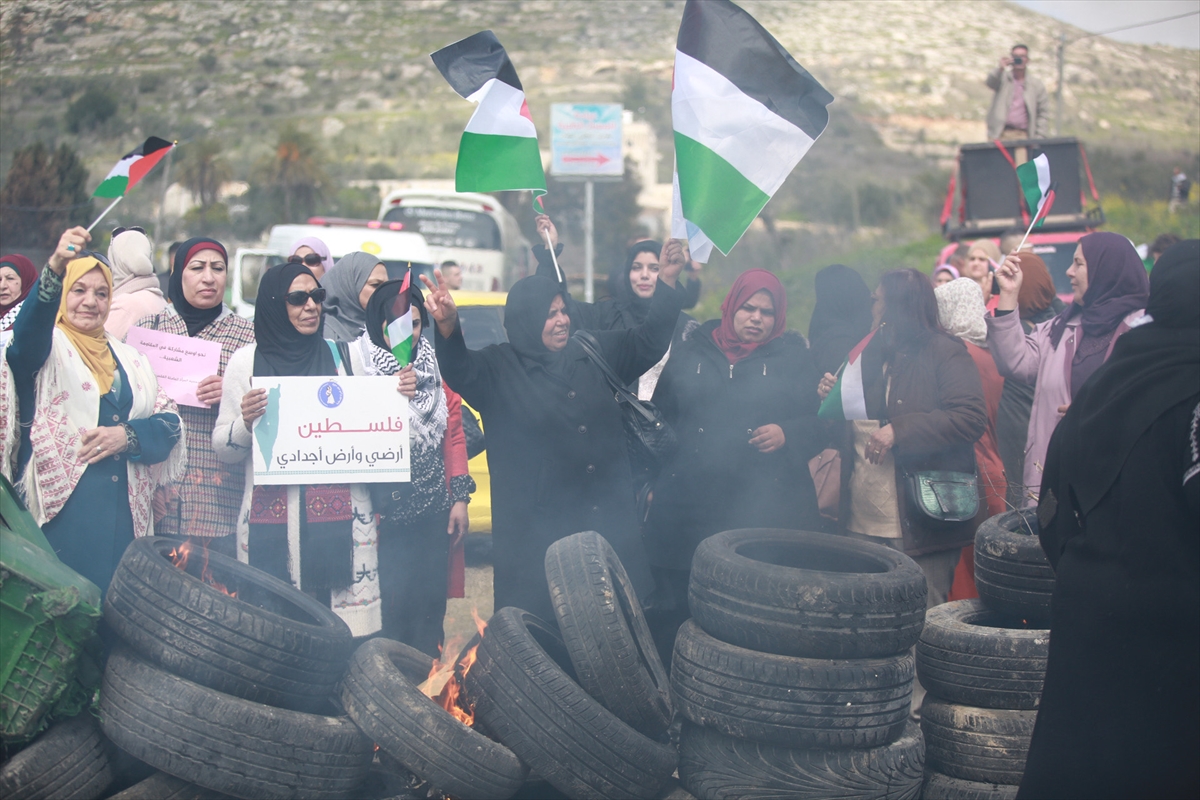 NABLUS (AA) – Filistinli kadınlar işgal altındaki Batı Şeria'nın kuzeyinde yer alan Nablus kentinde yasa dışı Yahudi yerleşim birimlerini protesto etti.