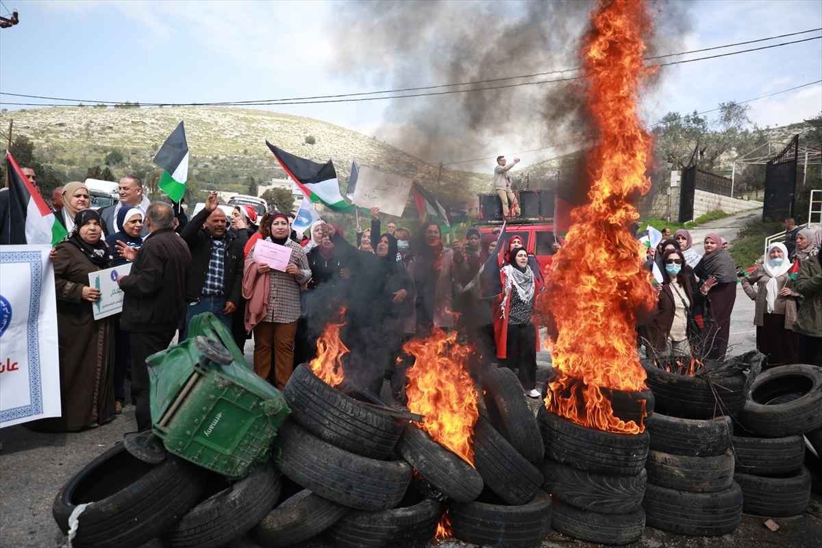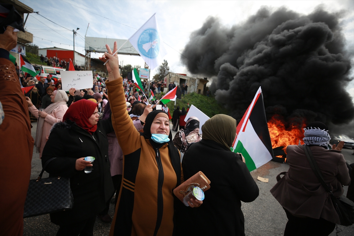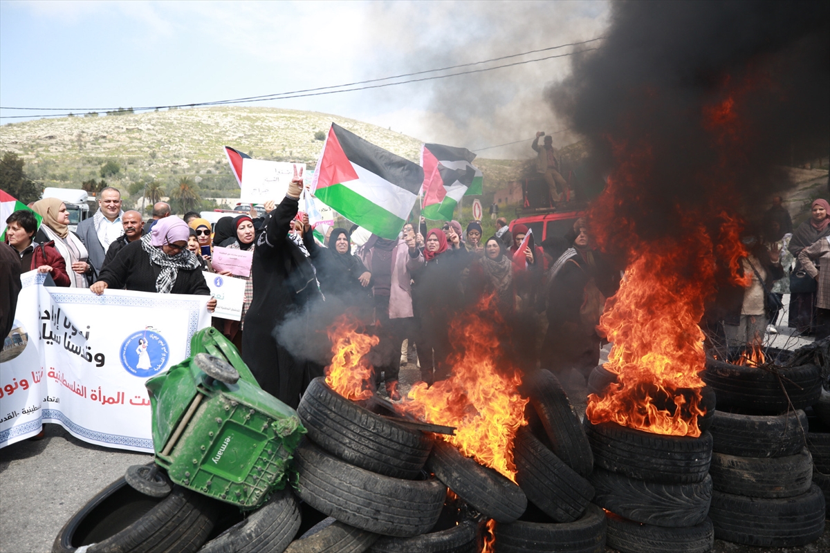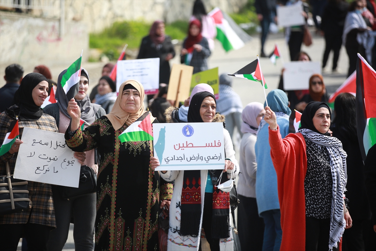 NABLUS (AA) – Filistinli kadınlar işgal altındaki Batı Şeria'nın kuzeyinde yer alan Nablus kentinde yasa dışı Yahudi yerleşim birimlerini protesto etti.