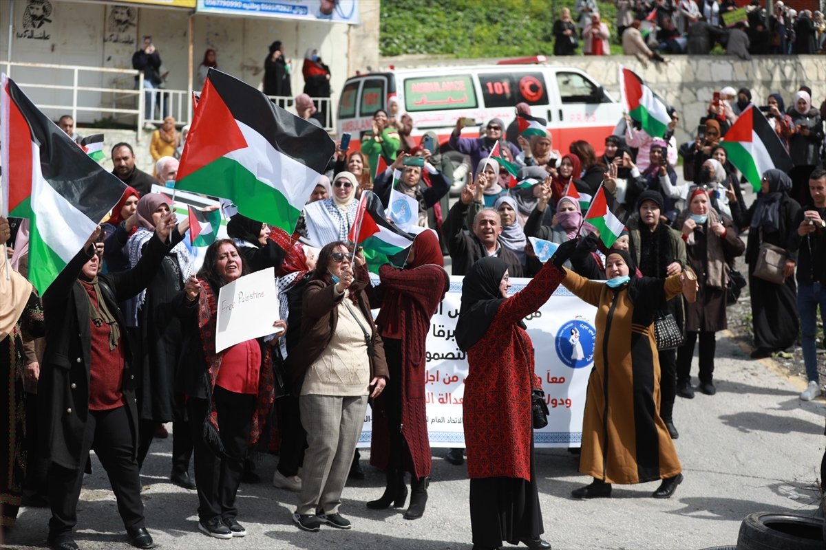 Filistin'deki bazı kadın derneklerinin çağrısı üzerine 8 Mart Dünya Kadınlar Günü münasebetiyle Nablus'un Burka beldesinde gösteri düzenlendi. Gösteriye, Filistinli grupların önde gelen kadın temsilcilerinin yanı sıra Fetih Hareketi Genel Başkan Yardımcısı Mahmud el-Alul ile diğer direniş gruplarından yetkililer de katıldı.