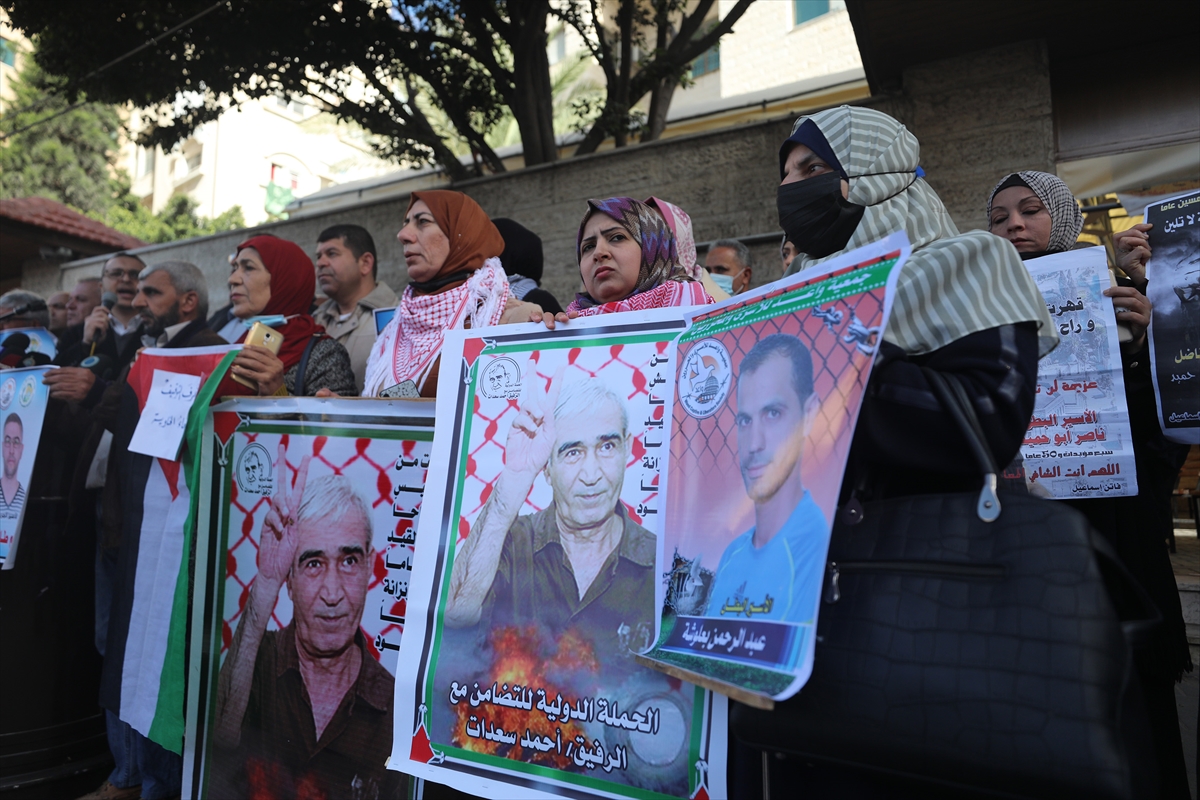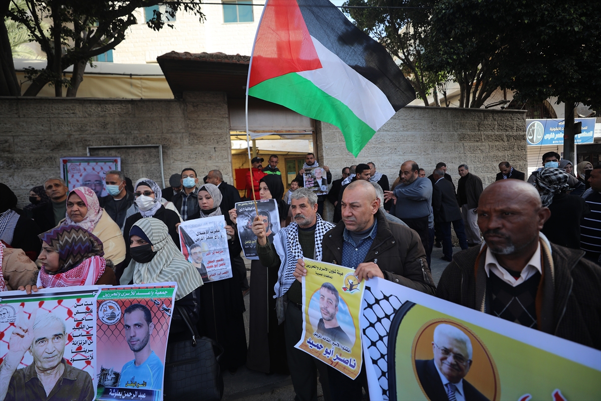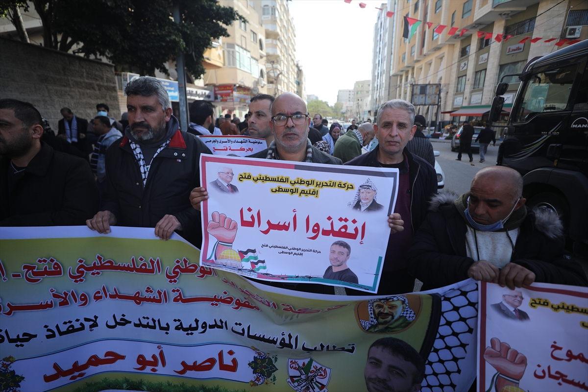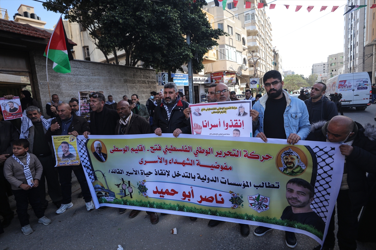 Filistinli tutuklulara ait resimlerin taşındığı eylemde, 49 yaşındaki Ebu Humeyd'in yanı sıra İsrail hapishanelerindeki tüm hasta tutukluların serbest bırakılması talep edildi.
