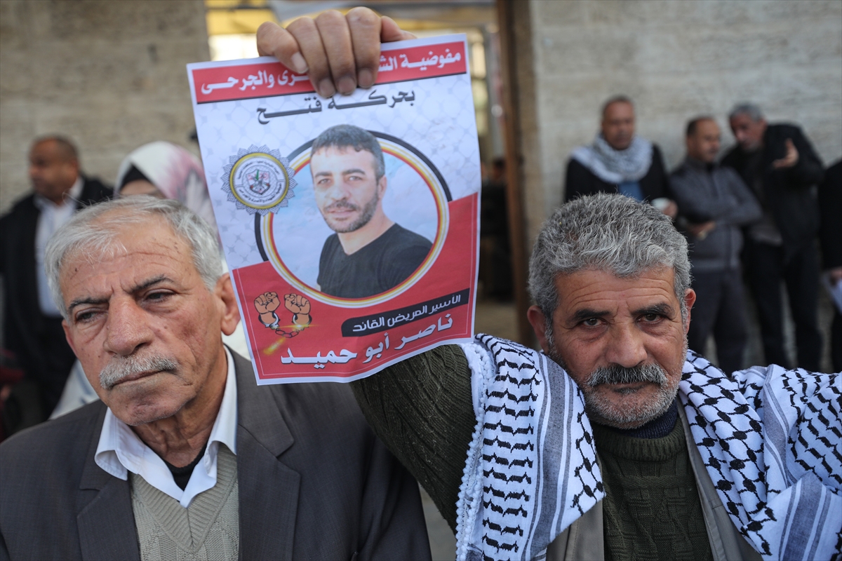 GAZZE (AA) – Gazze Şeridi'ndeki Filistinliler, İsrail hapishanelerinde "tıbbi ihmal" ihmal nedeniyle sağlık sorunları tehlike arz eden başta kanser hastası Nasır Ebu Humeyd olmak üzere tüm tutukluların serbest bırakılmasını istedi.