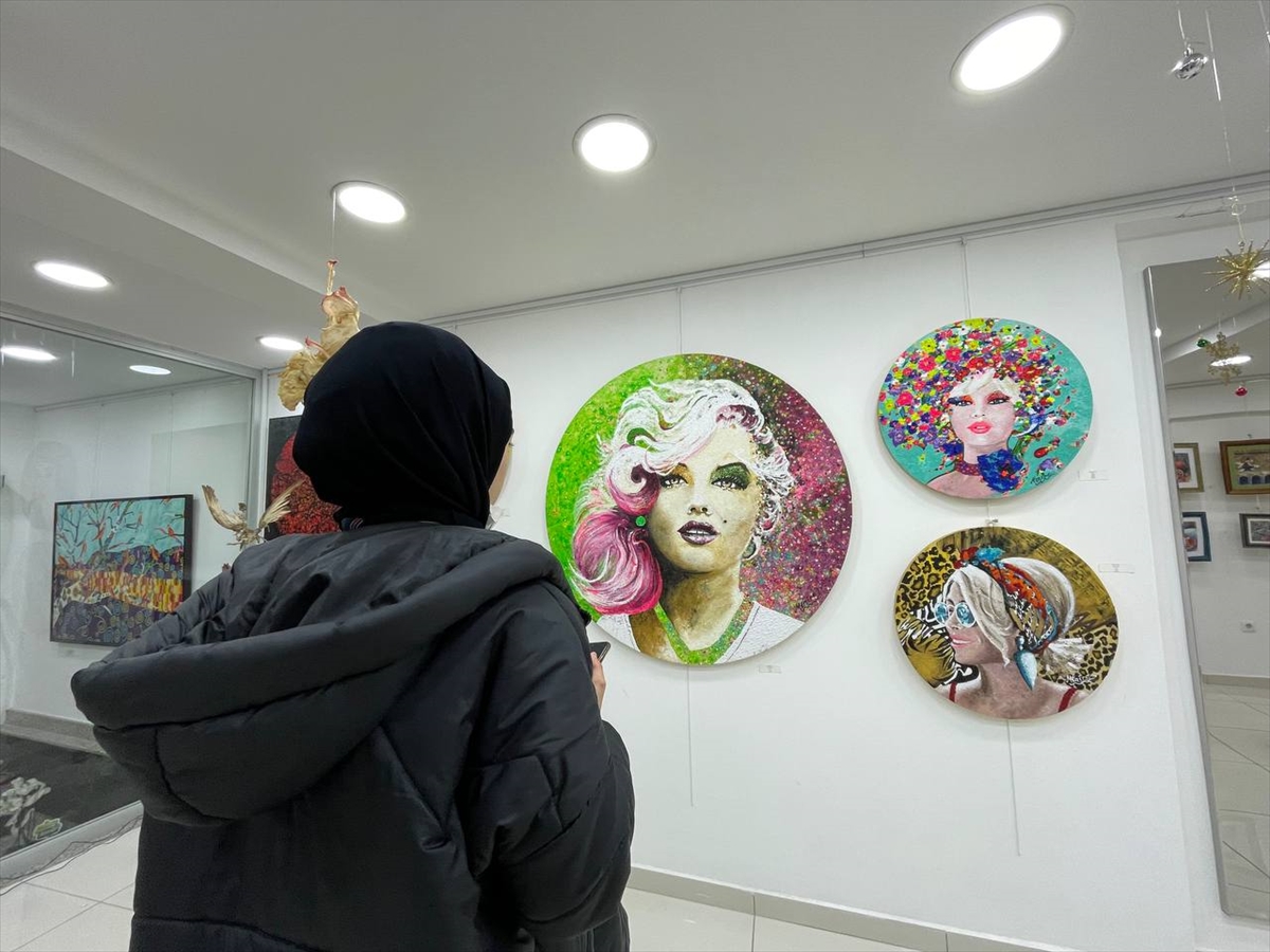 Ressam Ayşe Ayyıldız da çalışmalarında genelde kadınları ele aldığını anlatarak, "Çocuk gelinler, çalışan kadınlar, hayatın içinde var olan daha çok Anadolu kadınları üzerine çalışıyorum. Bunlar dışında özgün portreler çalışıyorum. Yüksek lisansımı da portreler alanında yaptım." dedi.