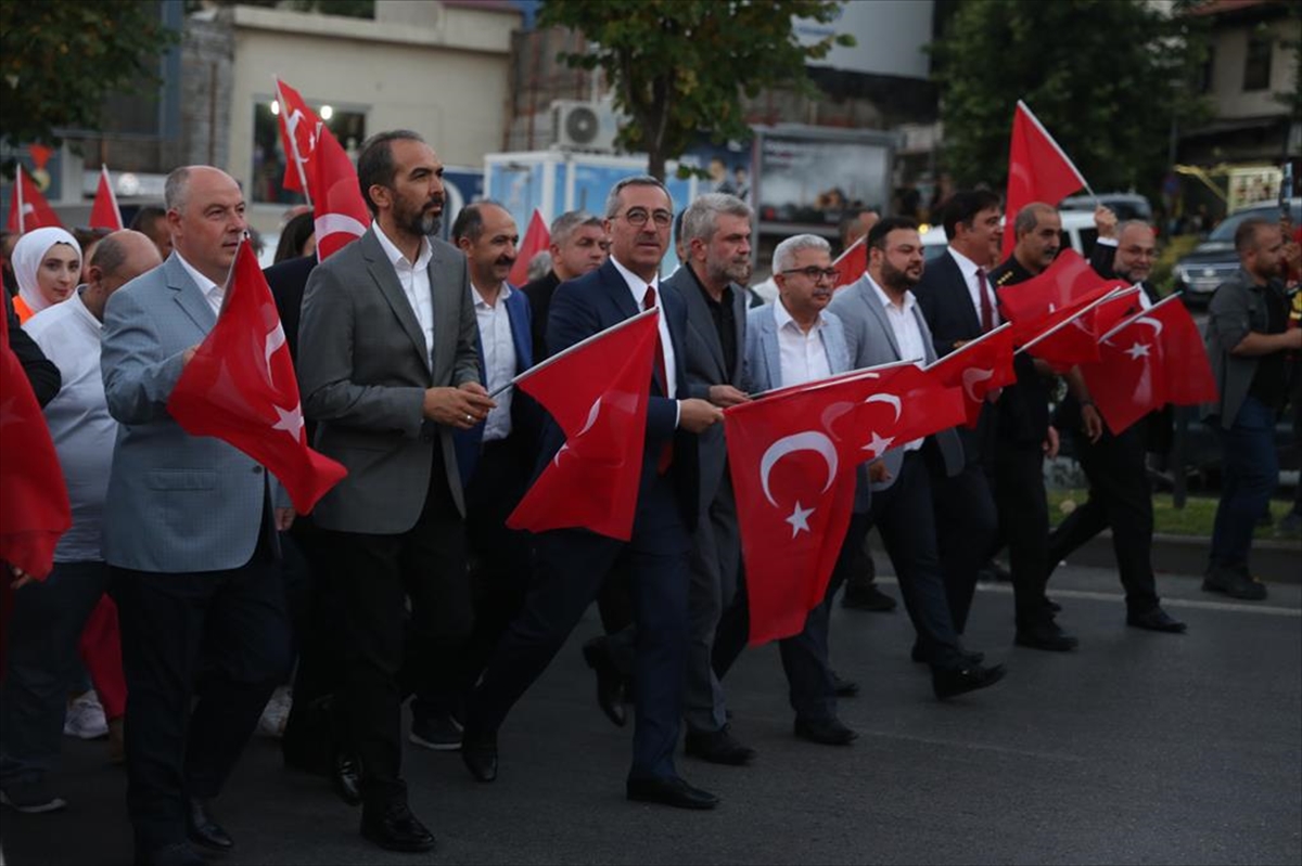 Büyükşehir Belediyesi Mehteran Takımı eşliğinde Demokrasi Meydanı'na kadar yürüyenlere, polis ekipleri de eşlik etti.