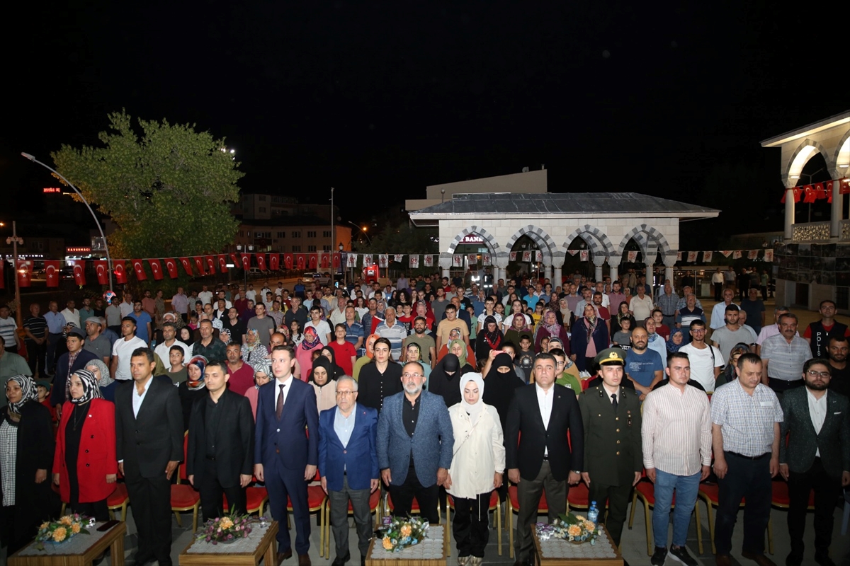 Meydanda bulunan vatandaşların birlikte akşam namazını kılmasıyla devam eden programda, Kuran-ı Kerim tilavetinin ardından şehitler için saygı duruşunda bulunuldu ve İstiklal Marşı okundu.