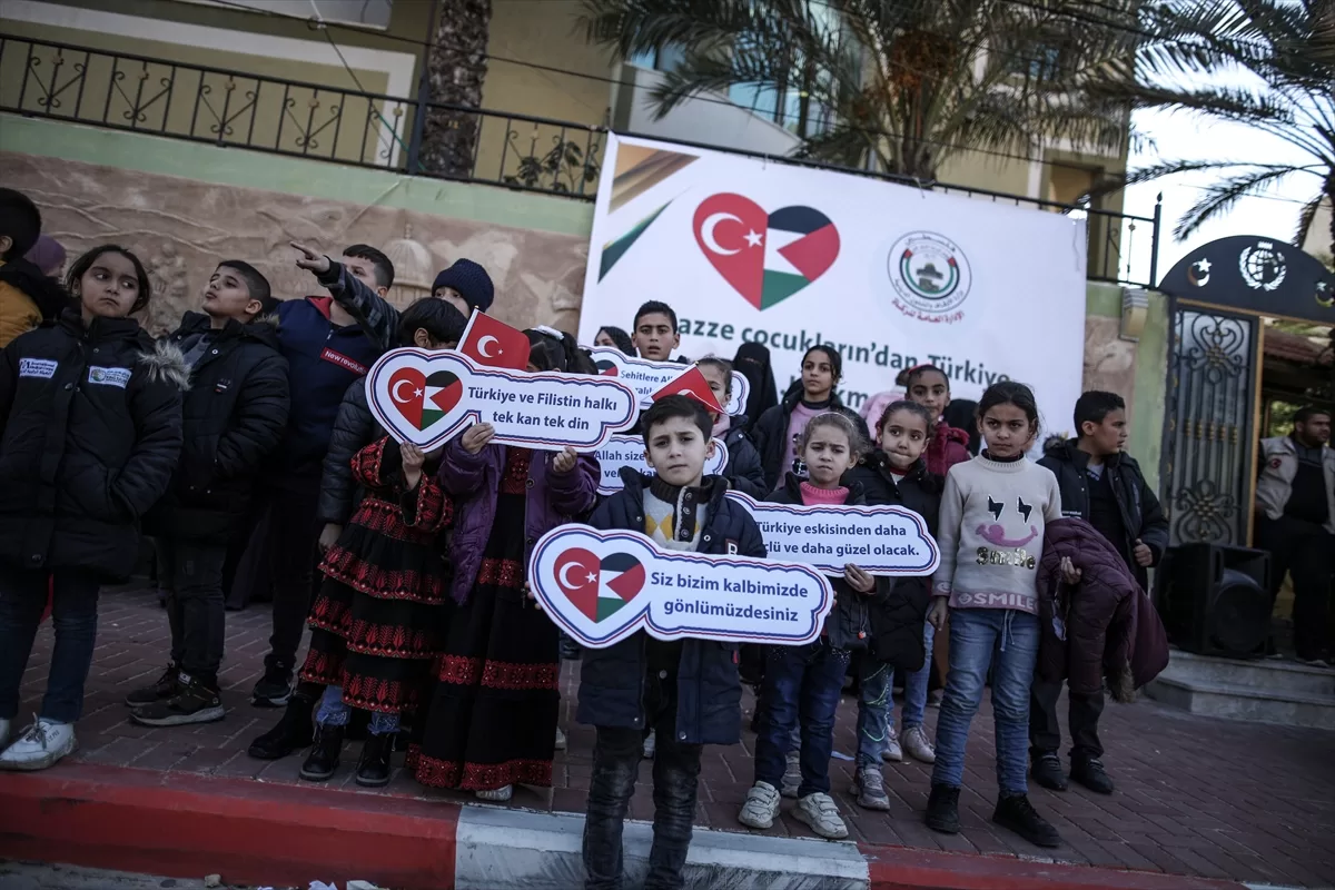 GAZZE (AA) – Gazze'deki Filistinli çocuklar ve aileleri, Kahramanmaraş merkezli depremlerden zarar gören Türkiye ve Suriye'deki afetzedelerle dayanışma gösterisi düzenledi.