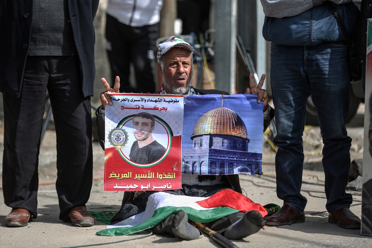 GAZZE (AA) – Abluka altındaki Gazze'de çok sayıda kişi, İsrail hapishanelerinde bulunan Filistinli tutuklularla dayanışma amacıyla cuma namazını Uluslararası Kızılhaç Komitesi önünde eda etti.