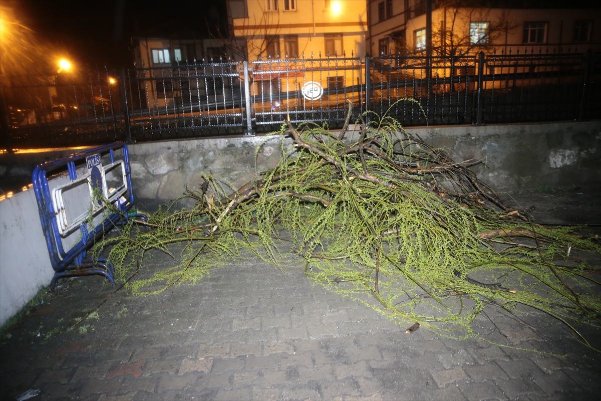 İlçe Emniyet Müdürlüğü otoparkında bulunan ve üzerine ağaç parçaları düşen 2 polis aracı hasar görürken İlçe Jandarma Komutanlığının önündeki ağaçlar ile bir aydınlatma direği devrildi.