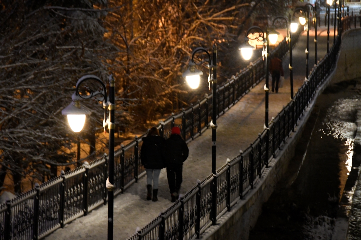 Kentte dün başlayan ve öğle saatlerinde etkisini artıran yağışla cadde ve sokaklar karla kaplandı.