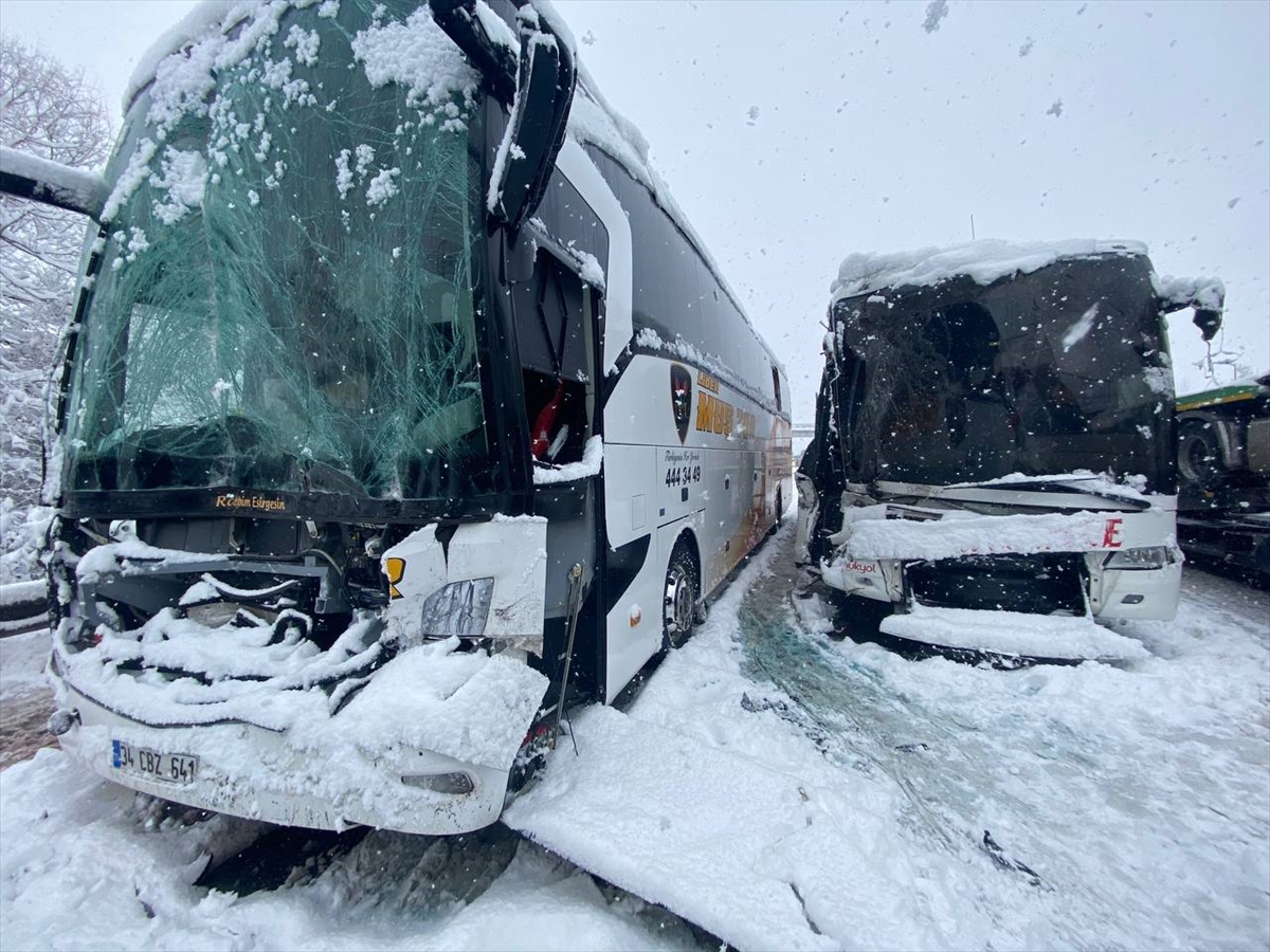 DÜZCE (AA) – Yoğun kar yağışının etkili olduğu Anadolu Otoyolu'nun Düzce kesiminde yaklaşık 30 aracın karıştığı zincirleme trafik kazası meydana geldi.