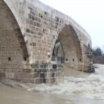Yağışların ardından tarihi Aspendos Köprüsü'nde de su seviyesi yükseldi. Bazı vatandaşlar köprü önünde hatıra fotoğrafı çektirdi.
