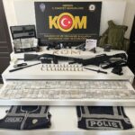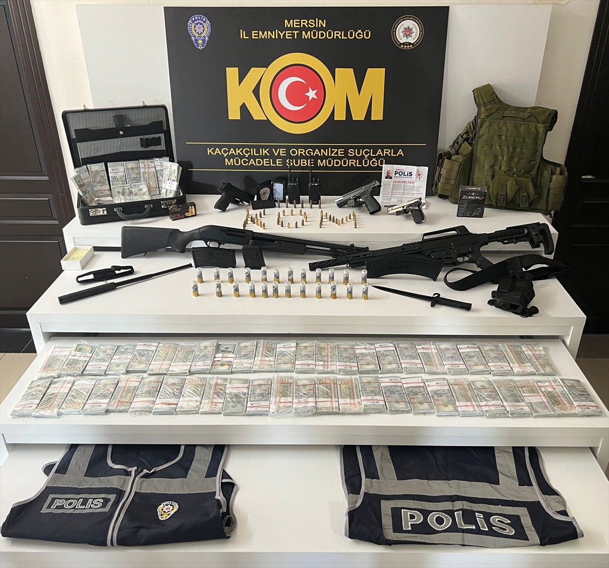Zanlıların adreslerinde 2 ruhsatsız av tüfeği, 3 kurusıkı tabanca, 2 polis telsizi, çok sayıda polis yeleği, sahte polis ve basın kartı ile dolandırıcılık amaçlı kullanıldığı değerlendirilen üzerinde "geçersizdir" yazılı bir çanta sahte dolar ele geçirildi.