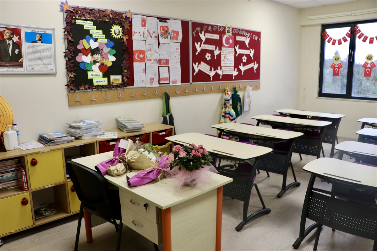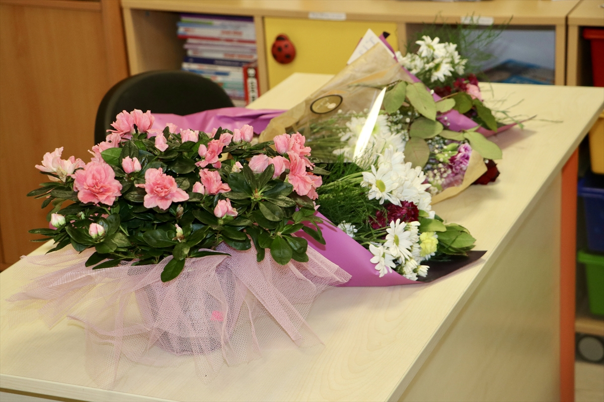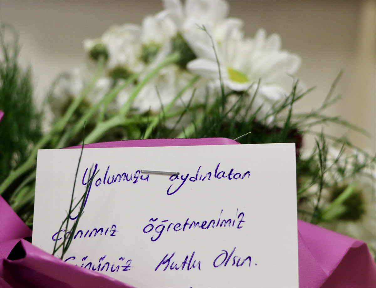 Öğrencileri, öğretmenlerinin 24 Kasım Öğretmenler Günü'nü kutlamak için getirdikleri çiçekleri Hatice öğretmenin boş masasına bıraktı.