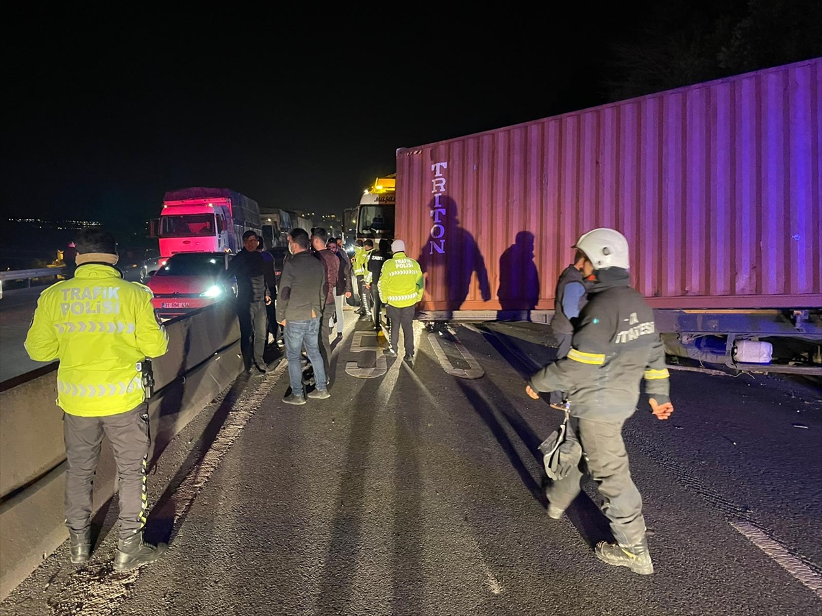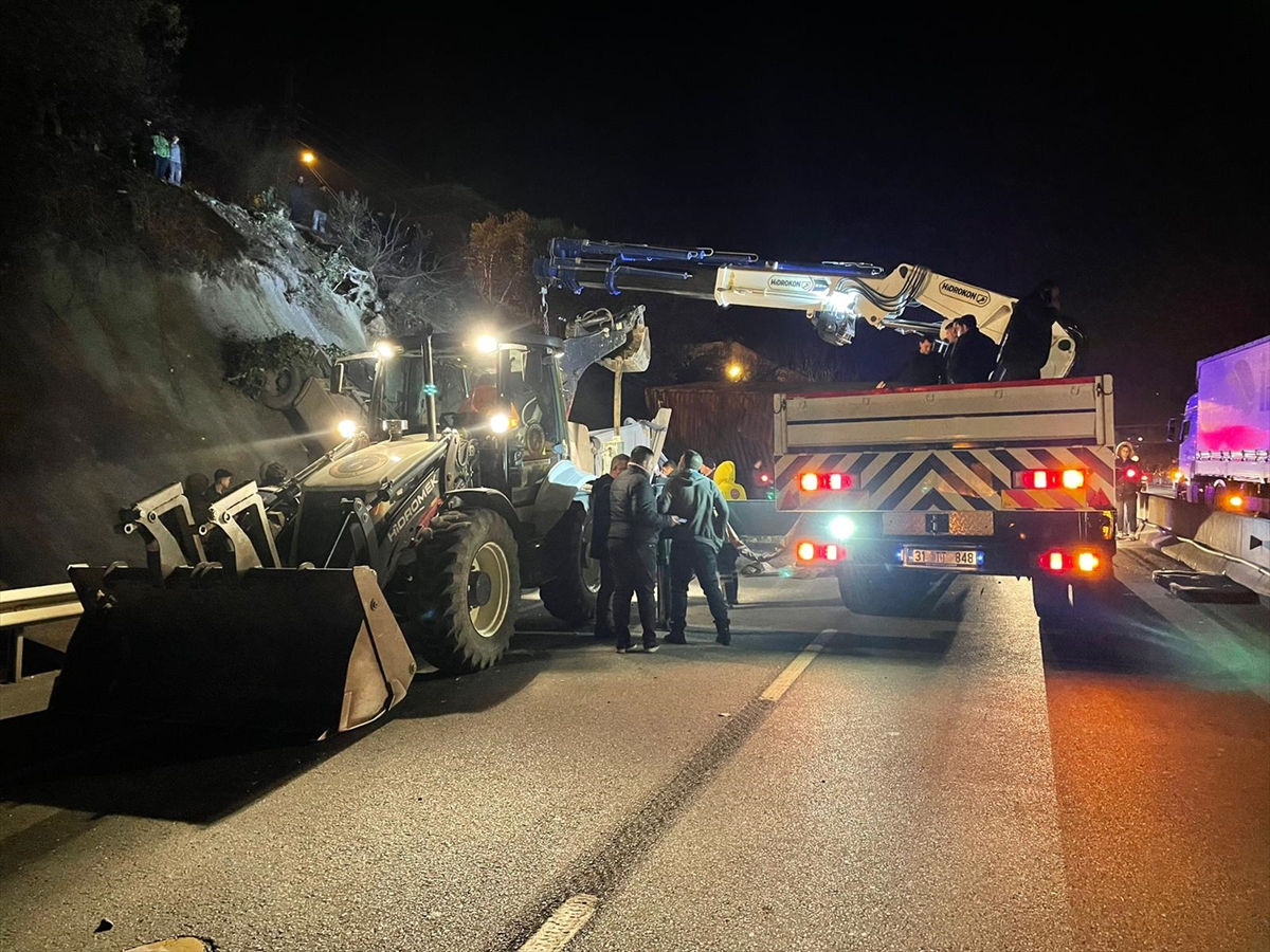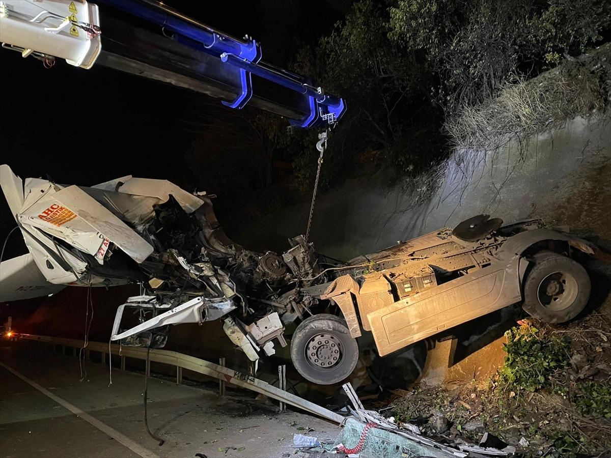 Kaza nedeniyle yolda trafik bir süre kontrollü sağlanırken, kullanılamaz hale gelen tır, vinç yardımıyla kaldırıldı.