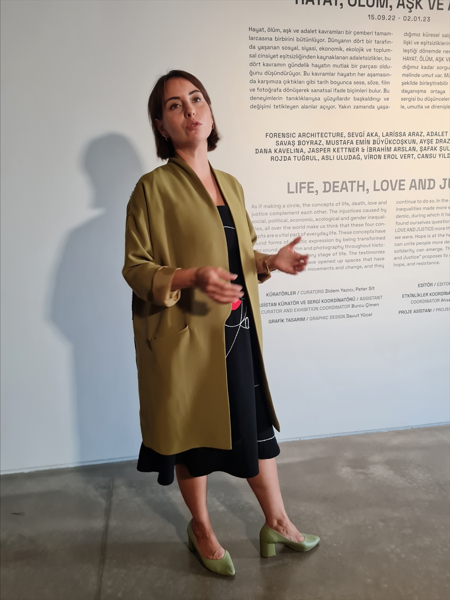 Serginin küratörlerinden Didem Yazıcı da hayat, ölüm, aşk ve adaletin 4 büyük kavram olduğunun altını çizerek, "Gündelik hayatımızda da bizi aslında her gün oyalayan ve her gün düşündüğümüz kavramlar." ifadelerini kullandı.