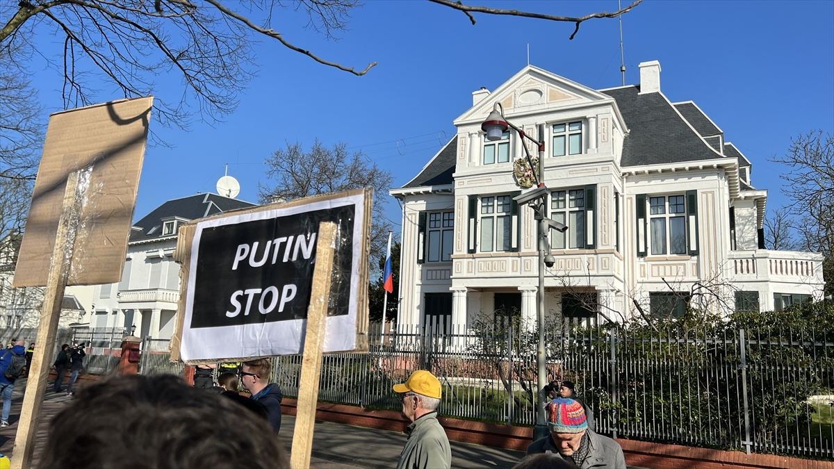LAHEY (AA) – Hollanda'da yaşayan Ruslar, Lahey kentinde ülkelerinin Ukrayna'ya saldırısına tepki gösterdi.