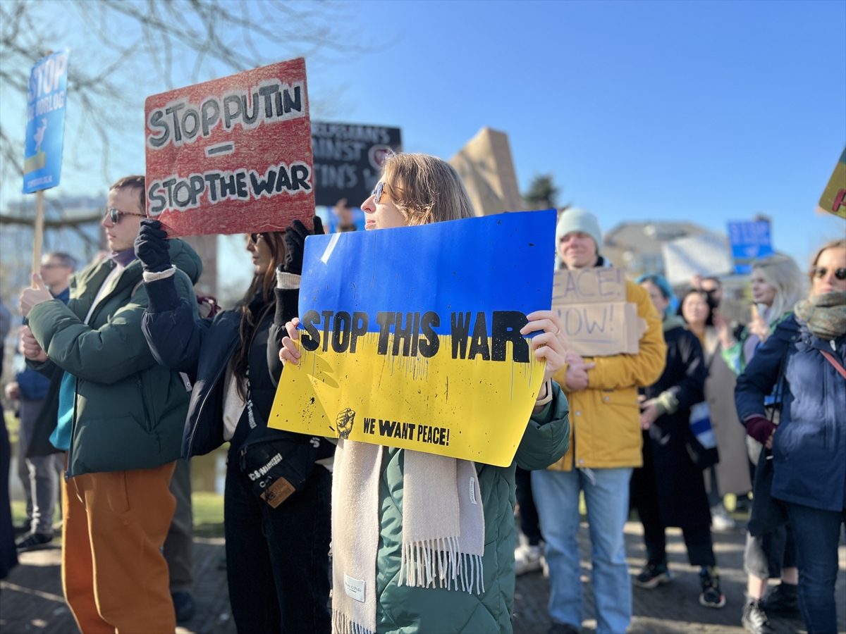 Diğer yandan aynı saatlerde Lahey kentindeki Koekamp Meydanı'nda da yüzlerce kişi, Rusya'nın Ukrayna'ya saldırısını protesto etmek için bir araya geldi.