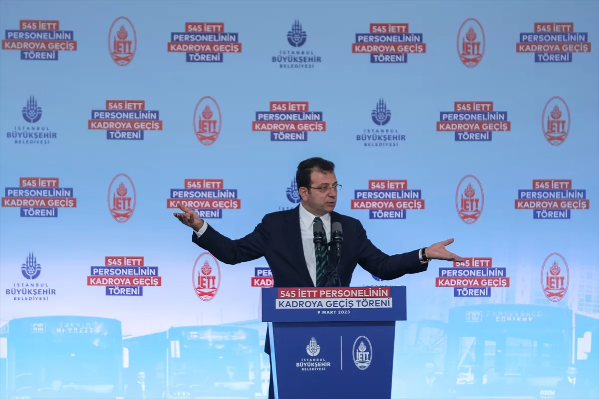 İkitelli İETT Garajı'nda İETT'nin 545 personelinin kadroya geçiş töreninde konuşan İmamoğlu, Türkiye'nin 6 Şubat'taki deprem nedeniyle acı günler yaşandığını söyledi.