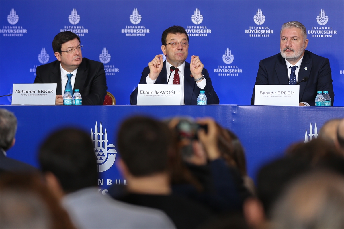 Saraçhane'deki belediye binasında düzenlenen basın açıklamasına İmamoğlu'nun yanı sıra CHP Genel Başkan Yardımcısı Muharrem Erkek, Saadet Partisi Genel Başkan Yardımcısı Bülent Kaya, İYİ Parti Genel Başkan Yardımcısı Bahadır Erdem, Demokrat Parti Genel Sekreteri Mustafa Serhan Yücel ve Gelecek Partisi Genel Başkan Yardımcısı Serap Yazıcı da katıldı.