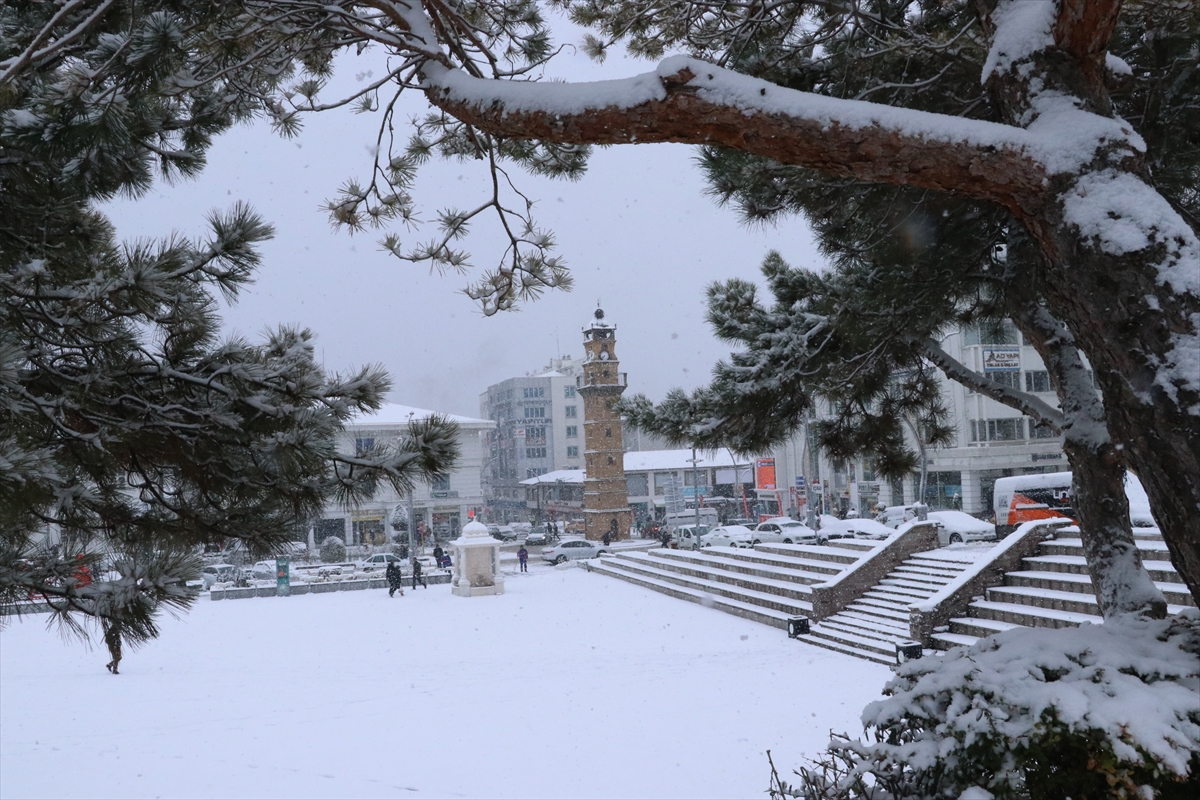 Yozgat'ta kent merkezinde gece başlayan kar, etkisini sürdürüyor.