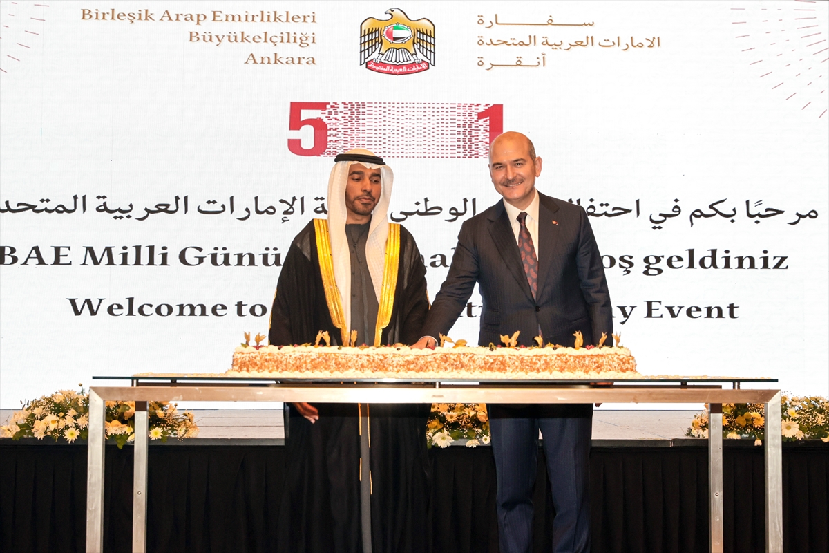 ANKARA (AA) – İçişleri Bakanı Süleyman Soylu, Birleşik Arap Emirlikleri'nin (BAE) 51. milli günü etkinliğine katılarak, bu ülkenin Ankara Büyükelçisi Saeed Thani Hareb Al Dhaheri ile pasta kesti.