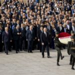 Bakan Soylu'nun mozoleye çelenk bırakmasının ardından saygı duruşunda bulunuldu.