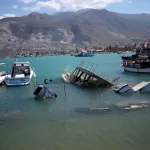 Limana demirleyen balıkçı teknelerinden bazıları lodos nedeniyle battı.