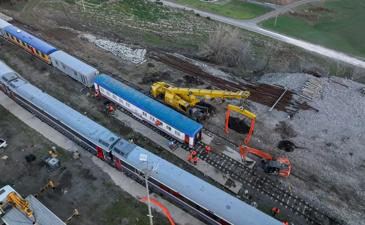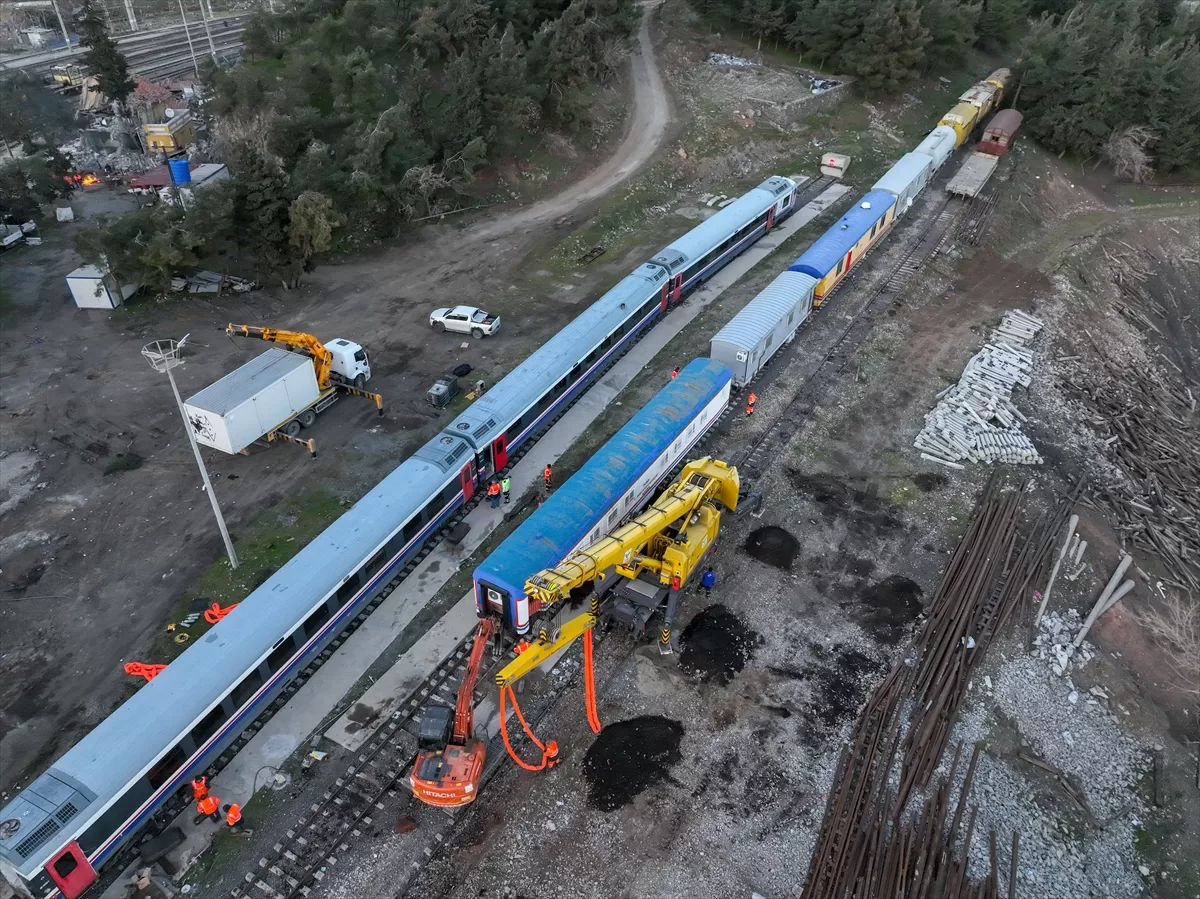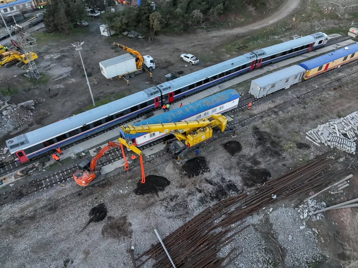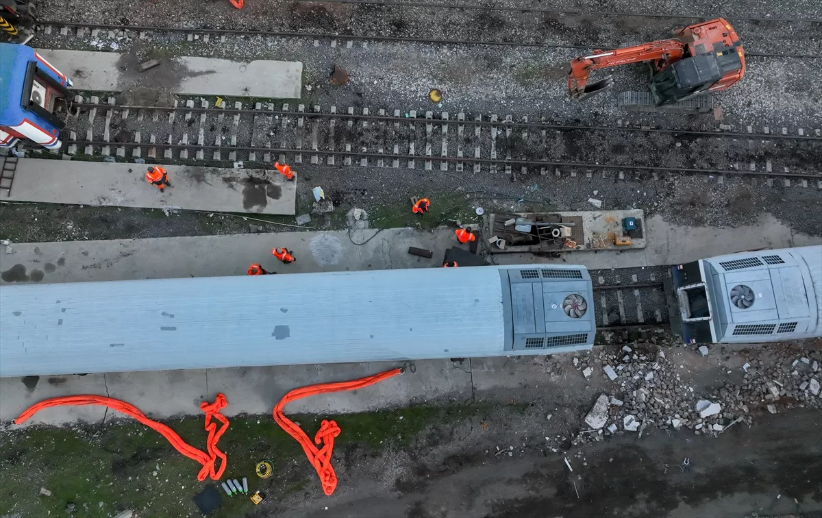GAZİANTEP (AA) – "Asrın felaketi" olarak nitelenen Kahramanmaraş merkezli depremlerden etkilenen Gaziantep'in İslahiye ilçesinde devrilen 2 vagon, vinç yardımıyla kaldırıldı.