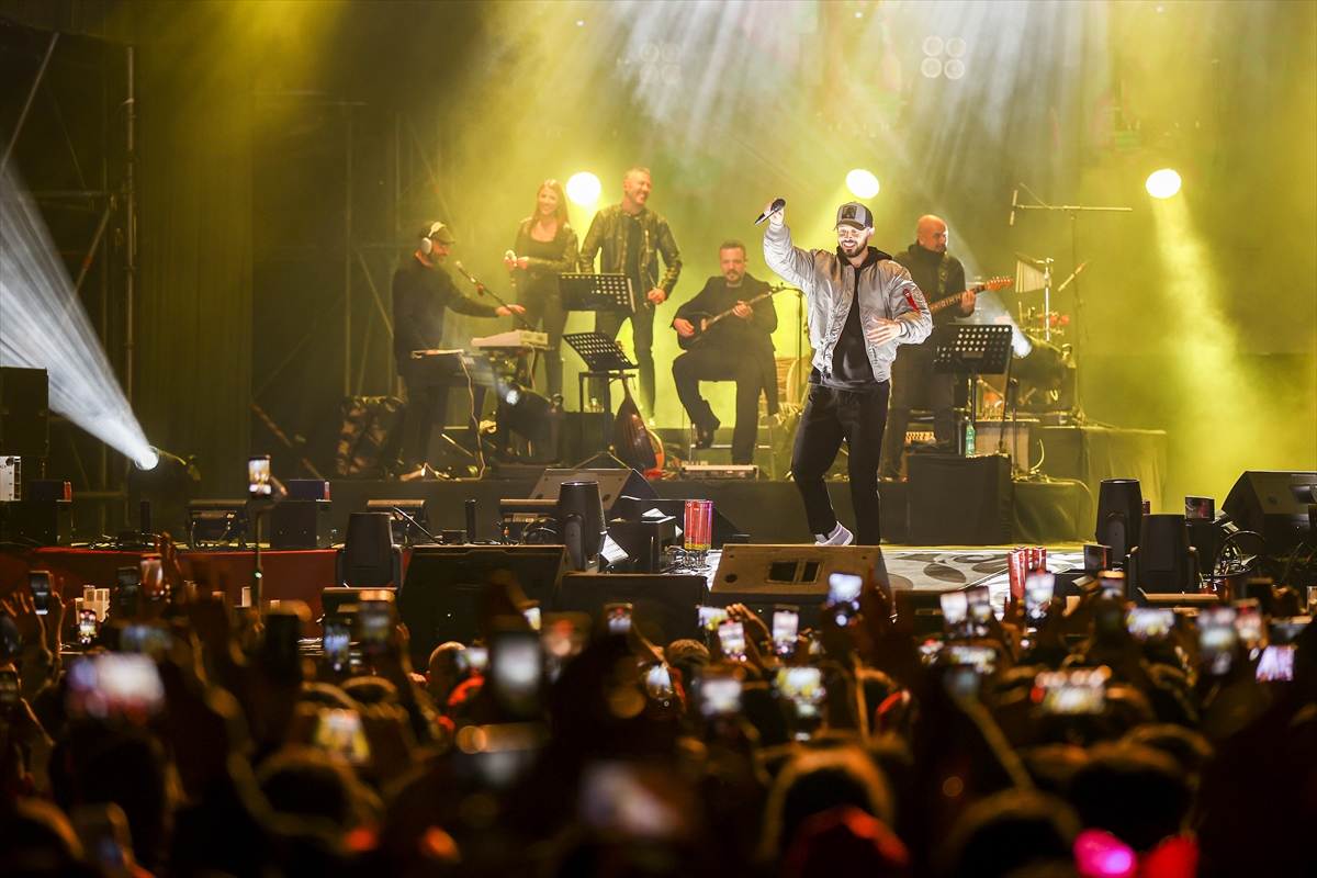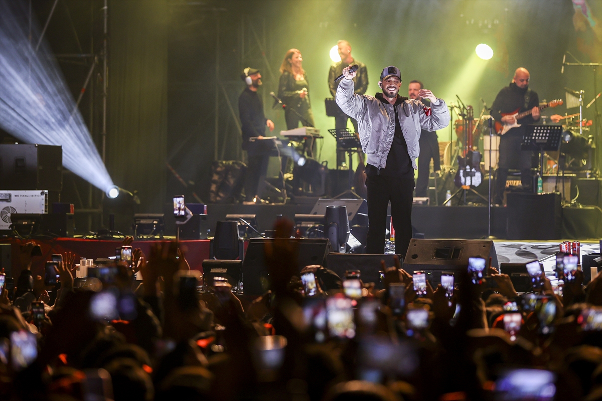 Meydanda kutlamalar kapsamında havai fişek gösterisi yapıldı.