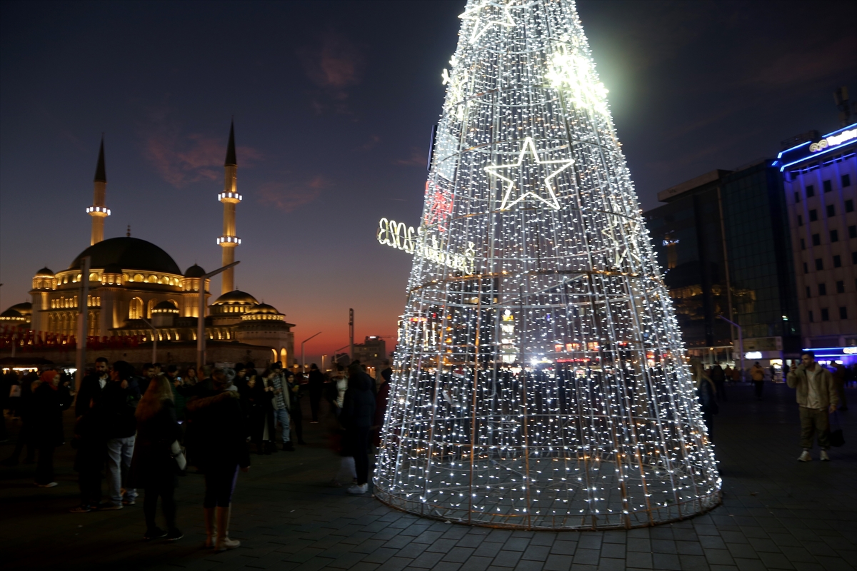 Taksim Meydanı ve İstiklal Caddesi'nde bir araya gelen çok sayıda vatandaş ve turist, yeni yılı Taksim Anıtı önünde karşıladı.