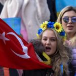 Ukrayna ve Türk bayrakları ile "Yaşasın Ukrayna", "Savaşı Durdurun", ''NATO gökyüzünü koru gerisini biz hal ederiz'' yazılı pankartlar taşıyan gruptakiler, savaşın bir an önce durdurulmasını istedi.