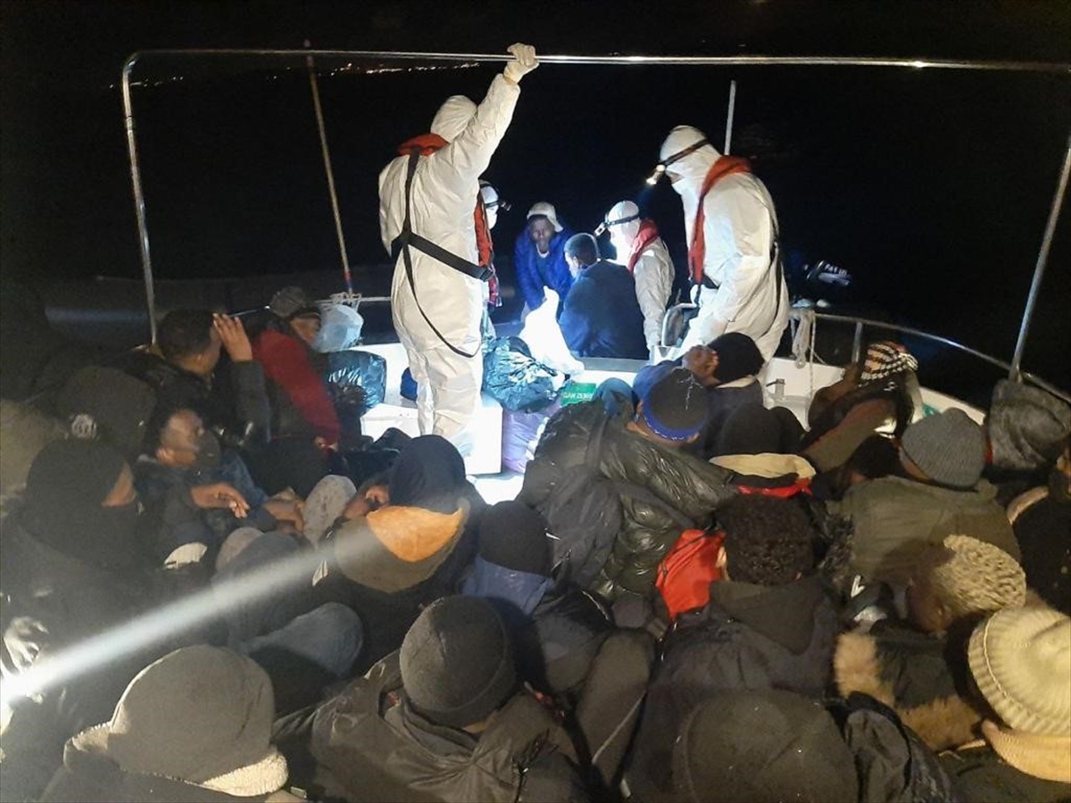 Yunanistan unsurlarınca Türk kara sularına geri itildiği belirlenen 46 göçmen kurtarıldı.