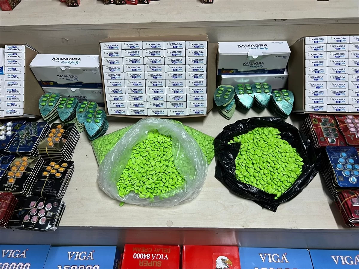 Adreslerdeki aramalarda 3 bin 600 litre sahte etil alkol, 177 bin 346 sahte ilaç, 56 bin 740 etiket ve bir miktar anason aroması ele geçirildi.