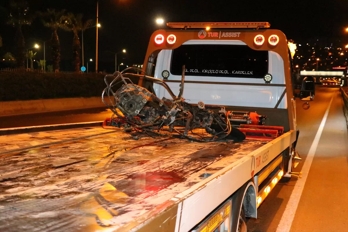 Yaklaşık 200 metre sürüklenen motosiklet alev alırken, sürücü Karakoyun yola savruldu.