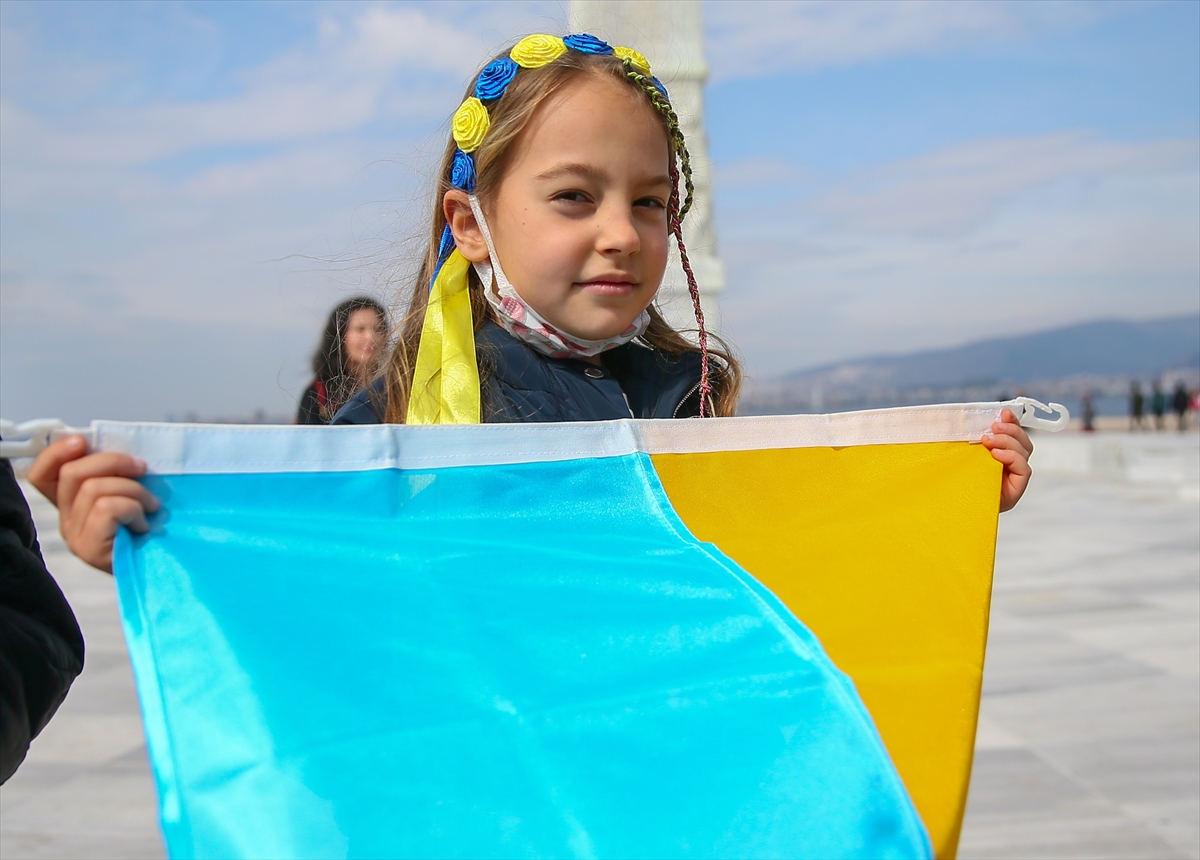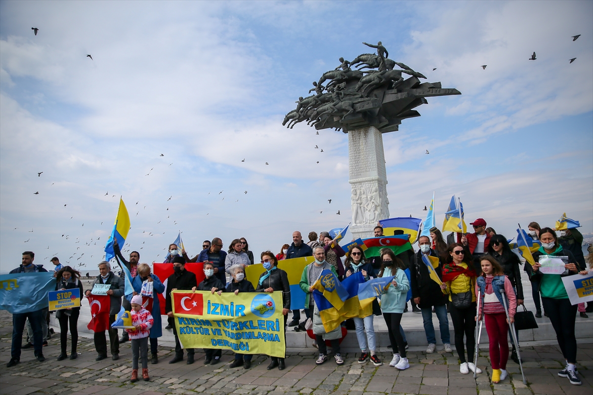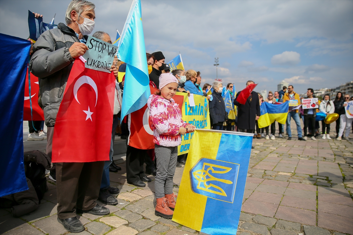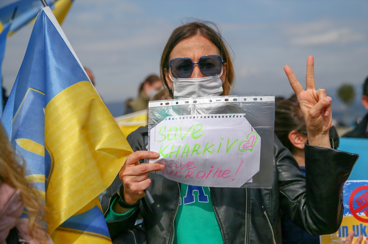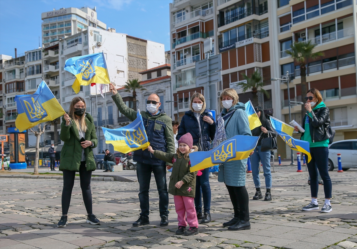 İZMİR (AA) – İzmir'de yaşayan Ukrayna vatandaşları, Rusya'nın ülkelerine düzenlediği saldırıya karşı gösteri düzenledi.
