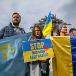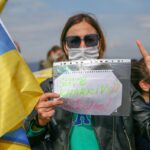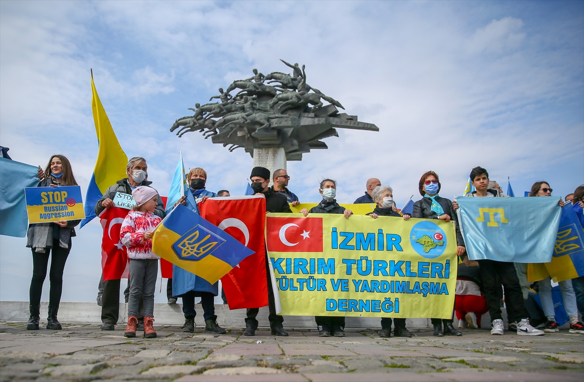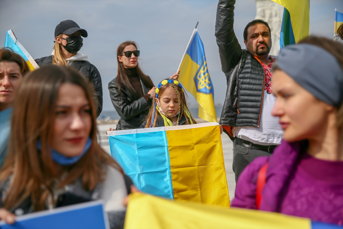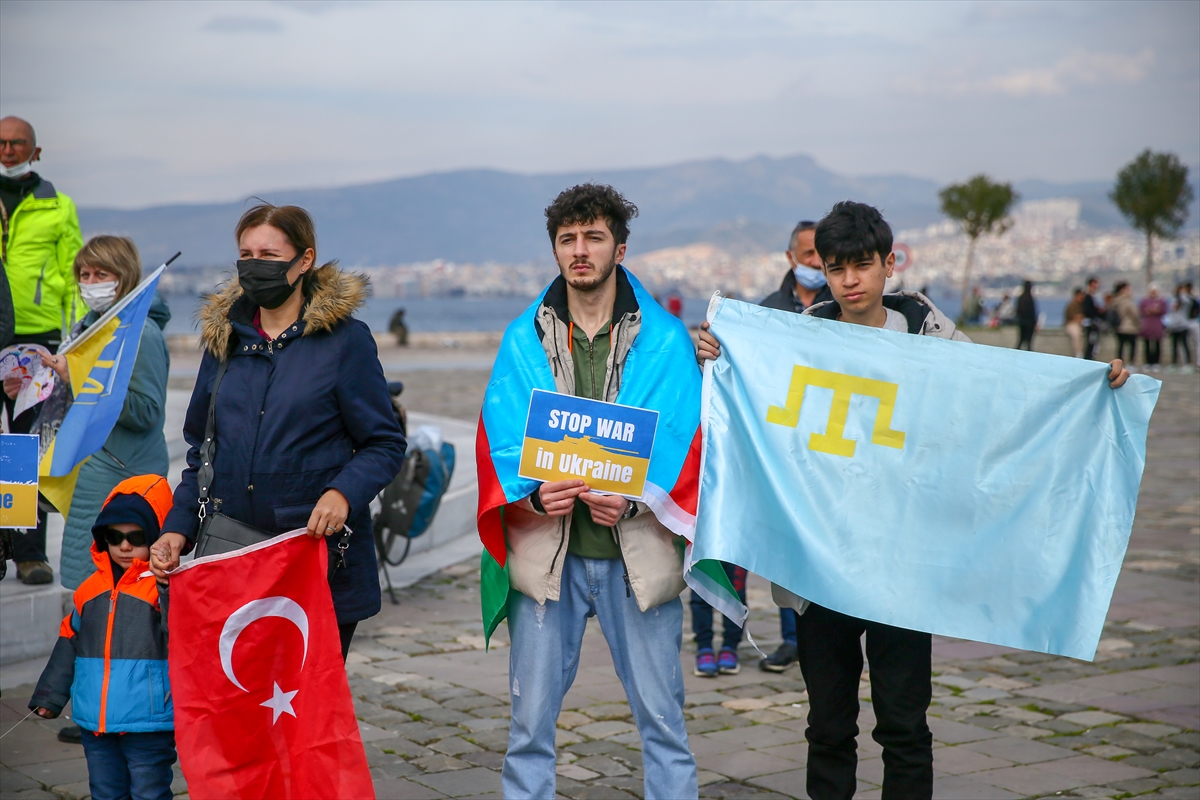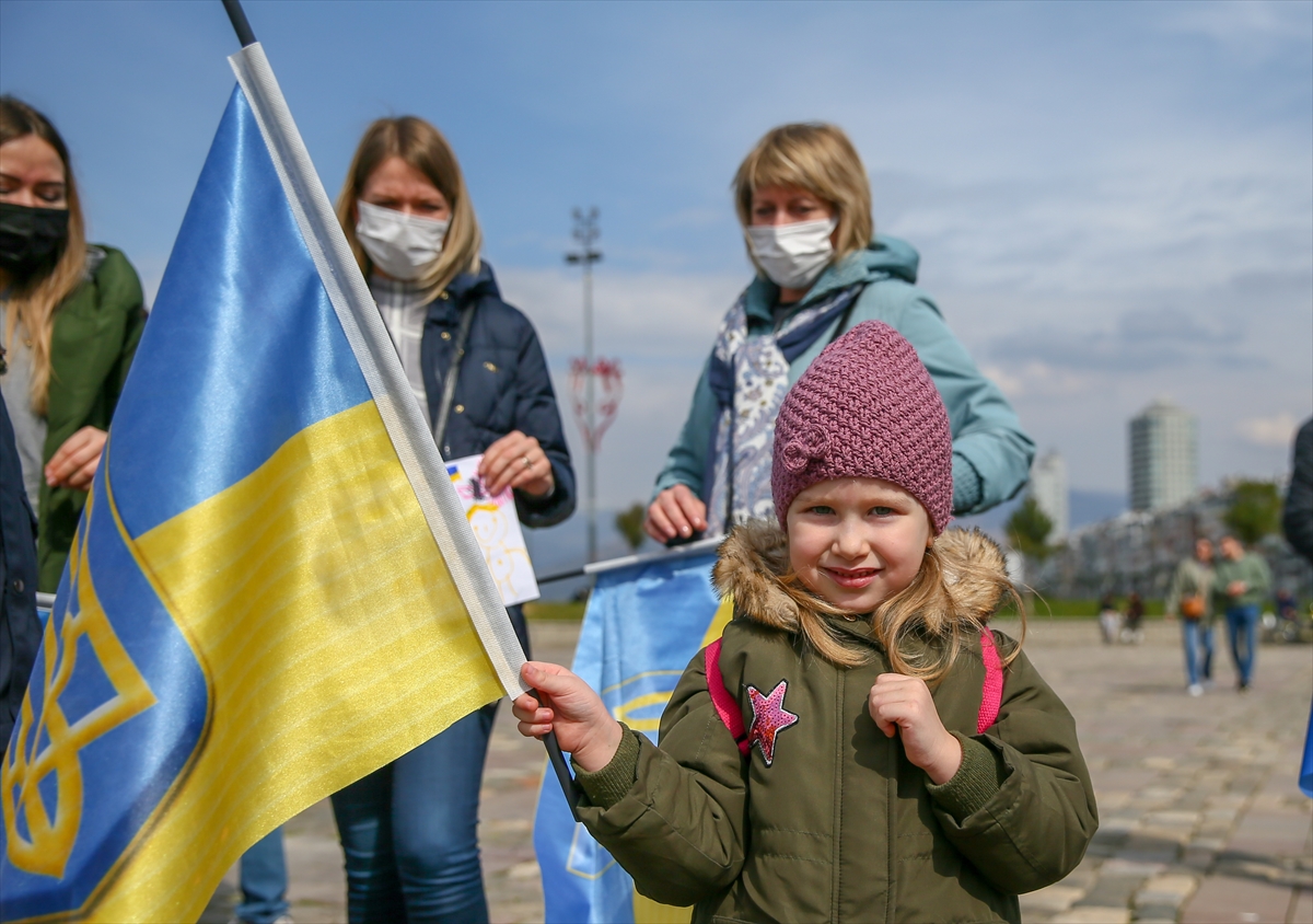 İZMİR (AA) – İzmir'de yaşayan Ukrayna vatandaşları, Rusya'nın ülkelerine düzenlediği saldırıya karşı gösteri düzenledi.