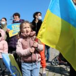 Ellerinde Ukrayna ile Türkiye bayrakları ile "Savaşa Hayır", "Saldırıları durdur Rusya" pankartlarıyla slogan atan Ukraynalılar ülkelerine destek verdi.
