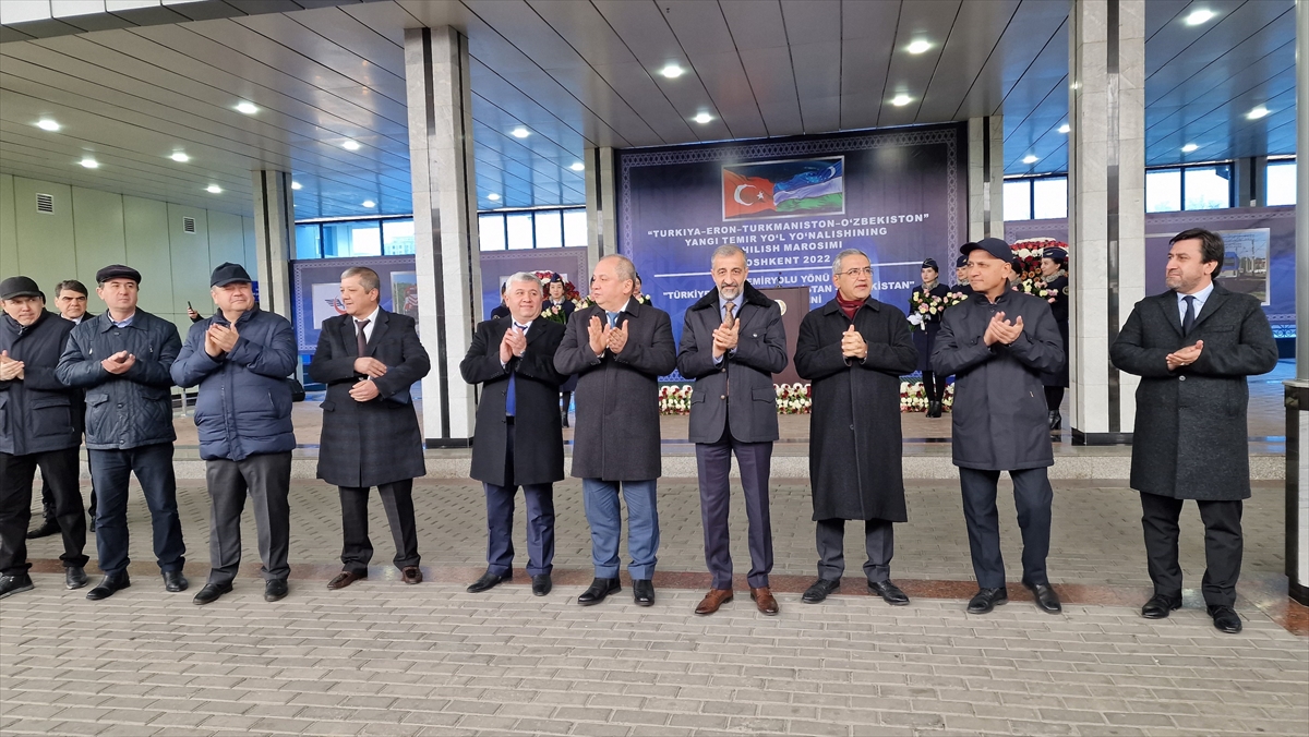 İzmir’den hareket edip Van Gölü üzerinden İran ve Türkmenistan'ı geçerek Özbekistan’a ulaşan ilk kargo treni, Taşkent Demiryolu İstasyonu'nda törenle karşılandı.