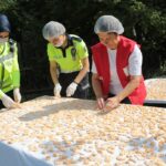 Kızılay Bolu Şubesi Kadın Teşkilatı Başkanı Ünsal Toylan'ın İhsaniye Mahallesi'nde bulunan evinin bahçesinde bir araya gelen Kızılay ekipleri, polis eşleri ve kadın polisler, tarhana hamuru açarak güneşte kurumaya bıraktı, erişte yaptı.