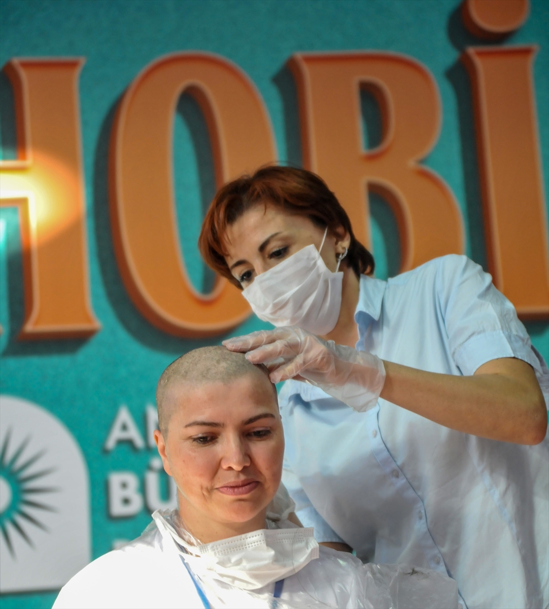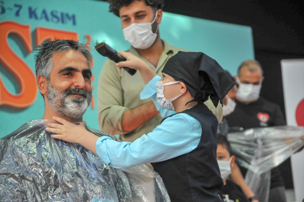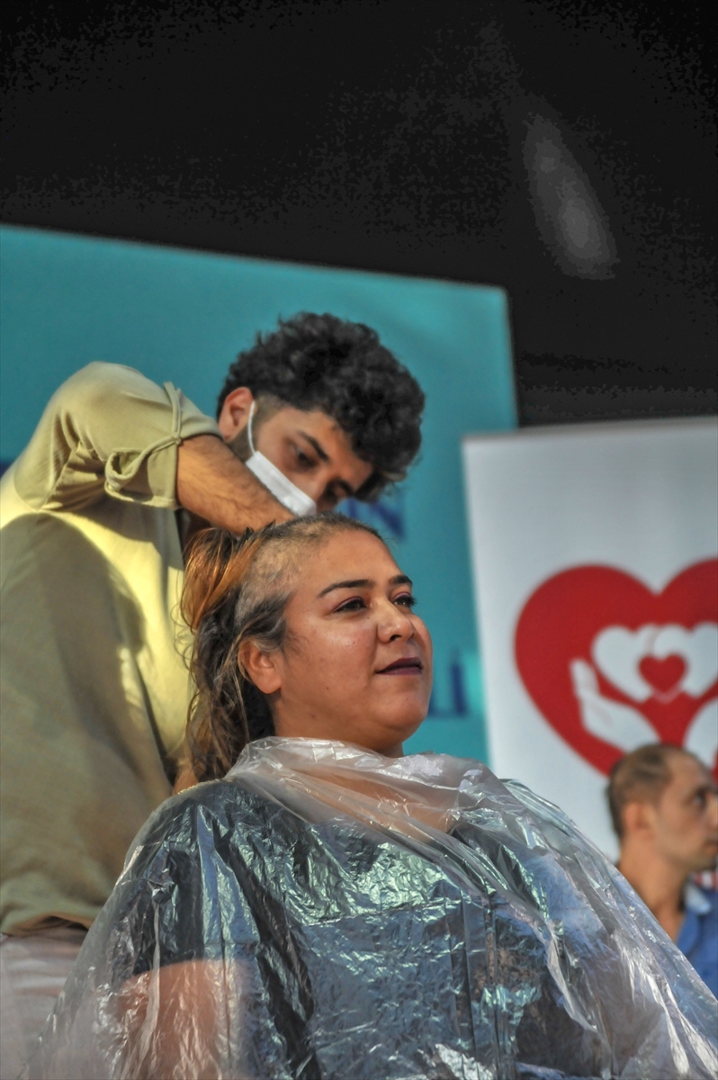 ANTALYA (AA) – Antalya'da 2-8 Kasım Lösemili Çocuklar Haftası dolayısıyla düzenlenen etkinlikte yaklaşık 50 kişi, kanser tedavisi gören çocuklara destek olmak, kan bağışı çağrısında bulunmak için saçlarını kazıttı.