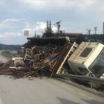 Yola dökülen hurdalar nedeni ile yolun bir kısmı trafiğe kapatıldı. Trafik akışı tek şeritten kontrollü bir şekilde sağlanıyor.
