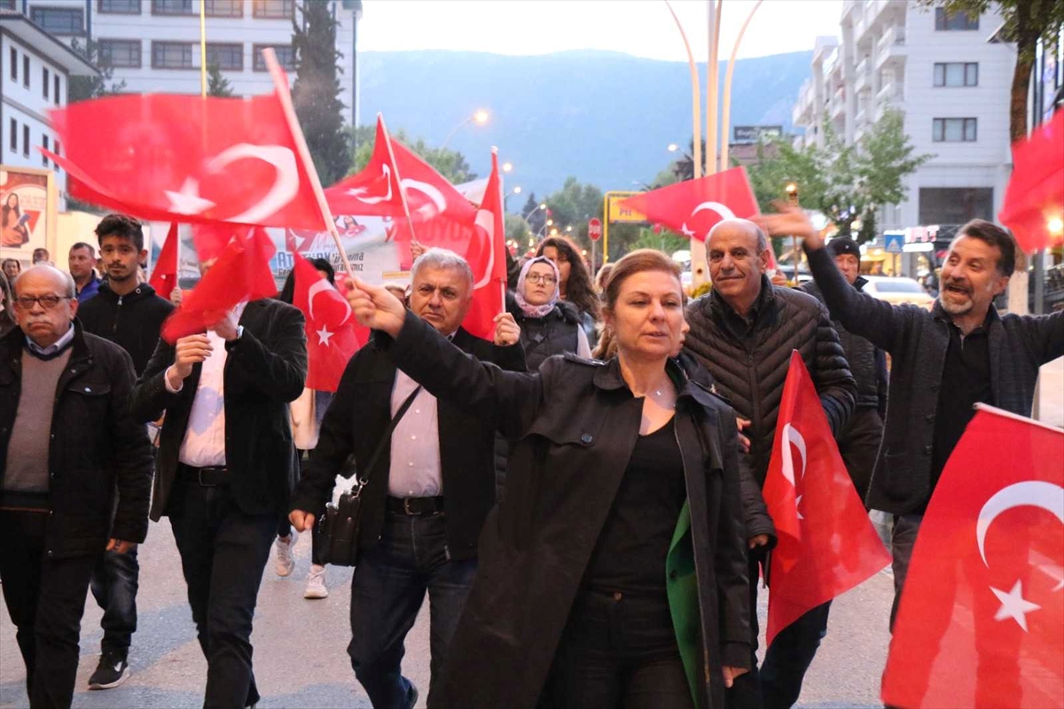 Yürüyüşe katılanlar, ellerinde Türk bayraklarıyla marşlar eşliğinde yaklaşık 2 kilometre yürüyüp Misak-ı Milli Demokrasi Meydanı'na ulaştı.