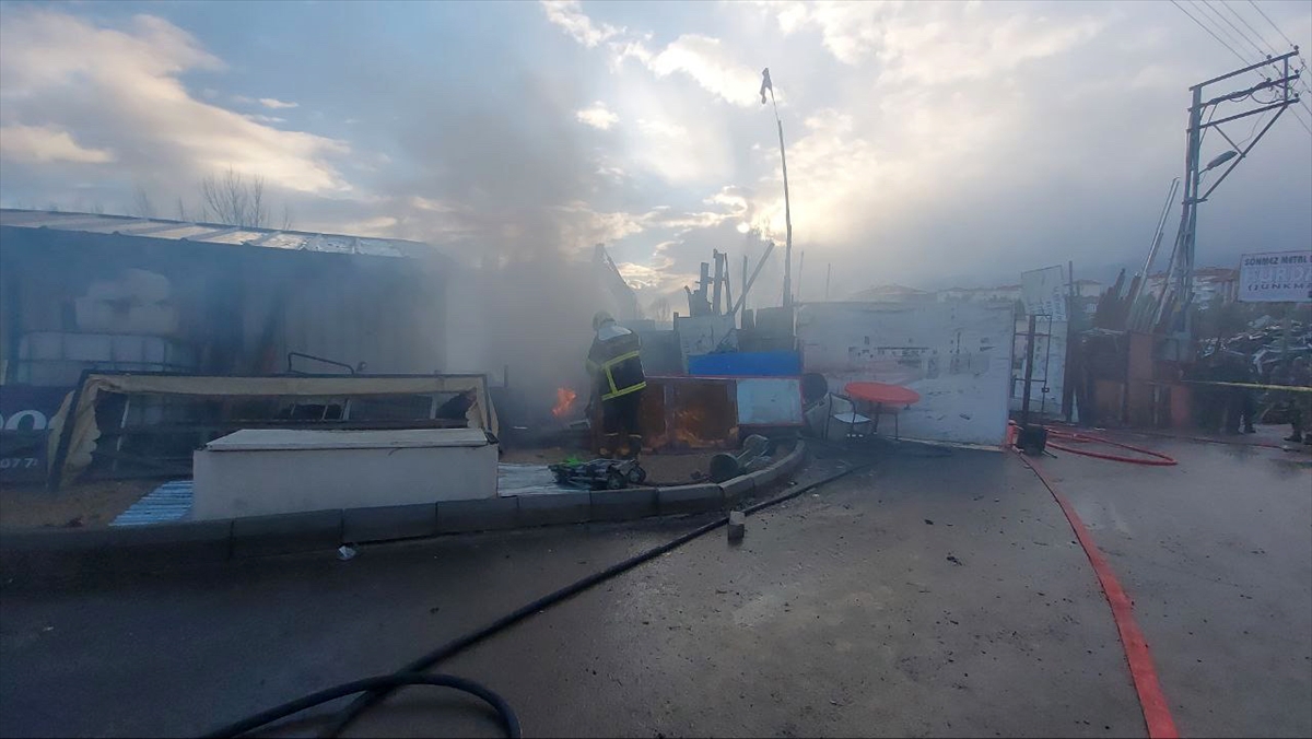 Sanayi Sitesi'nde Kadir S'ye ait hurda malzemelerin toplandığı depoda henüz belirlenemeyen nedenle yangın çıktı.