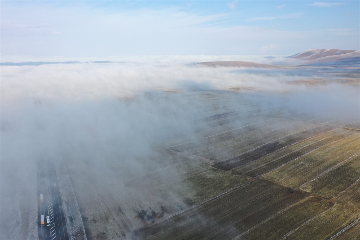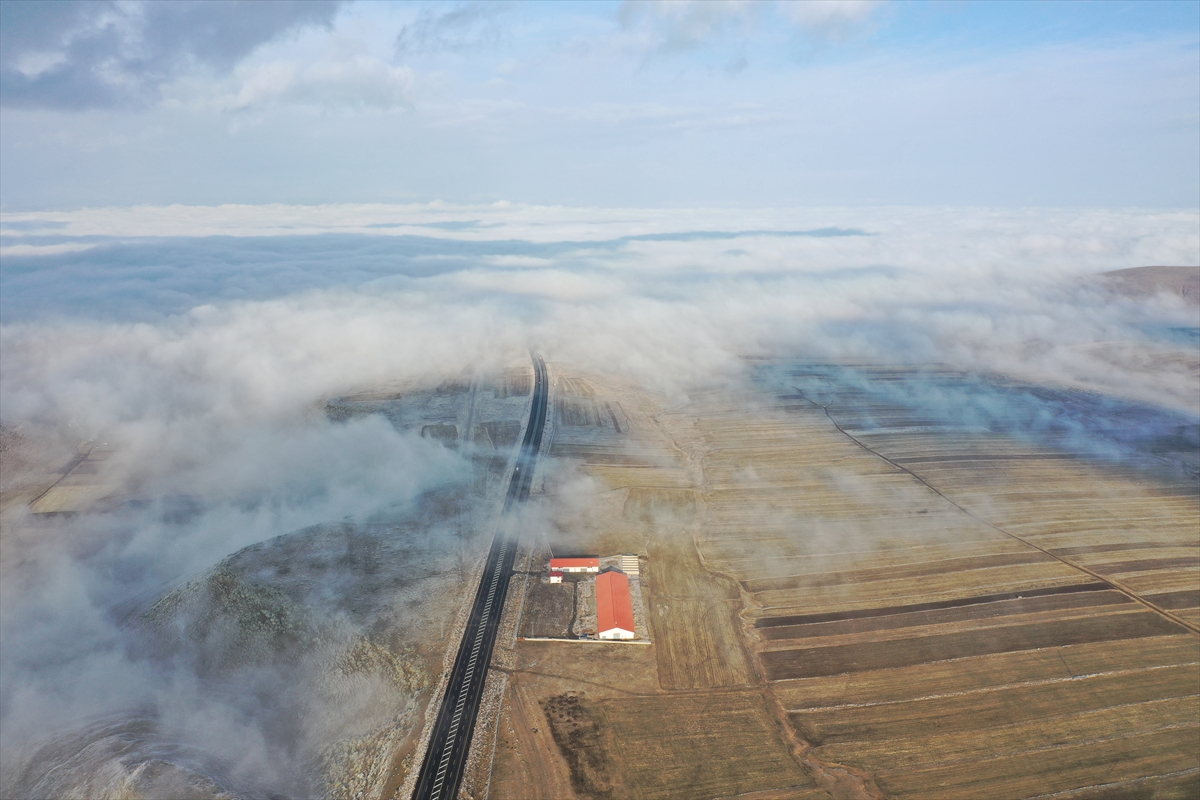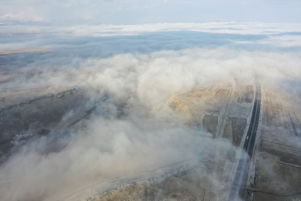 KARS (AA) – Kars Ovası'nın üzerini kaplayan sis tabakası, dron ile görüntülendi.